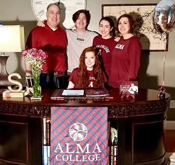 Abby was accepted into the Honors Program, Alma Dance Company and Alma Dance Team. She signed with Alma College on May 5, supported by family and friends through Zoom and fellow dance team members “socially distanced” on the lawn.