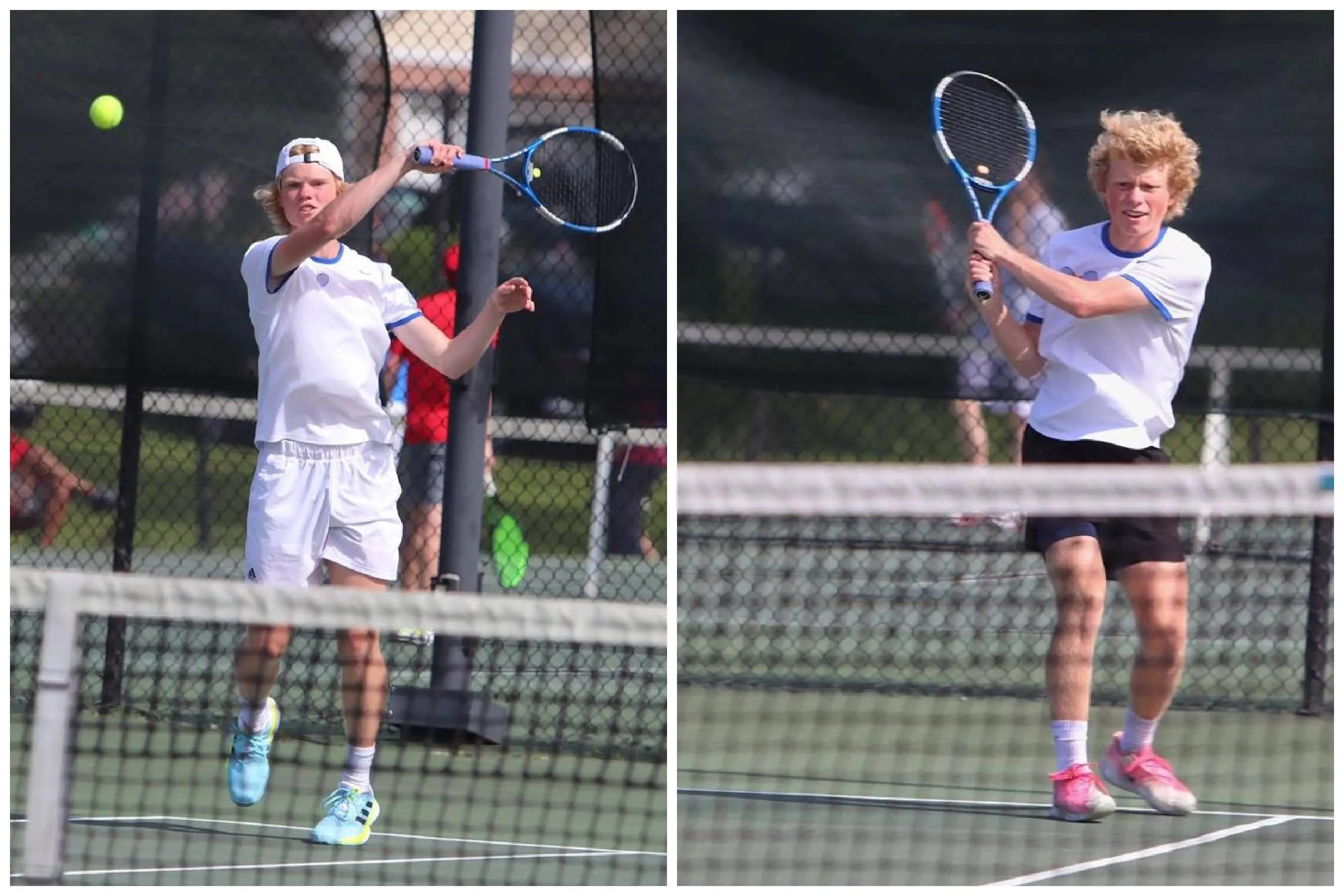 Kiefer and Kian Court opened up the first round of the KHSAA State Tennis Championship held at the Top Seed Tennis Complex in Nicholasville, Ky., against the Henry Clay team of Wenxiang Sun and Jake Walters. Their tournament ended with a 6-4, 6-1 loss.