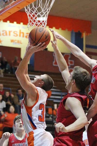 Marshall County senior Lane Roberts drew the foul attempting this shot against Livingston County last week.