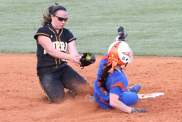 Bailey Murphy slides safely into 2nd base in last week’s rain cancelled game against Murray.