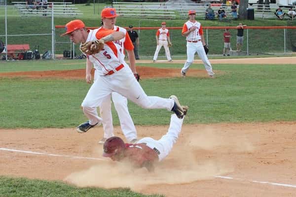 After making the tag on a McCracken County runner, Blake Johnson had no where to go but up over, in the Marshals Region 1 semi-final game against the Mustangs.