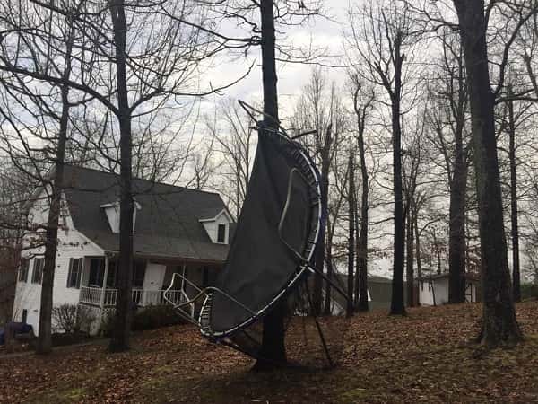 In Marshall County, there are reports of trees down across the county, damage to buildings including the Kentuckiana Yacht Sales building on Hwy. 641, siding off of homes and debris blown around.