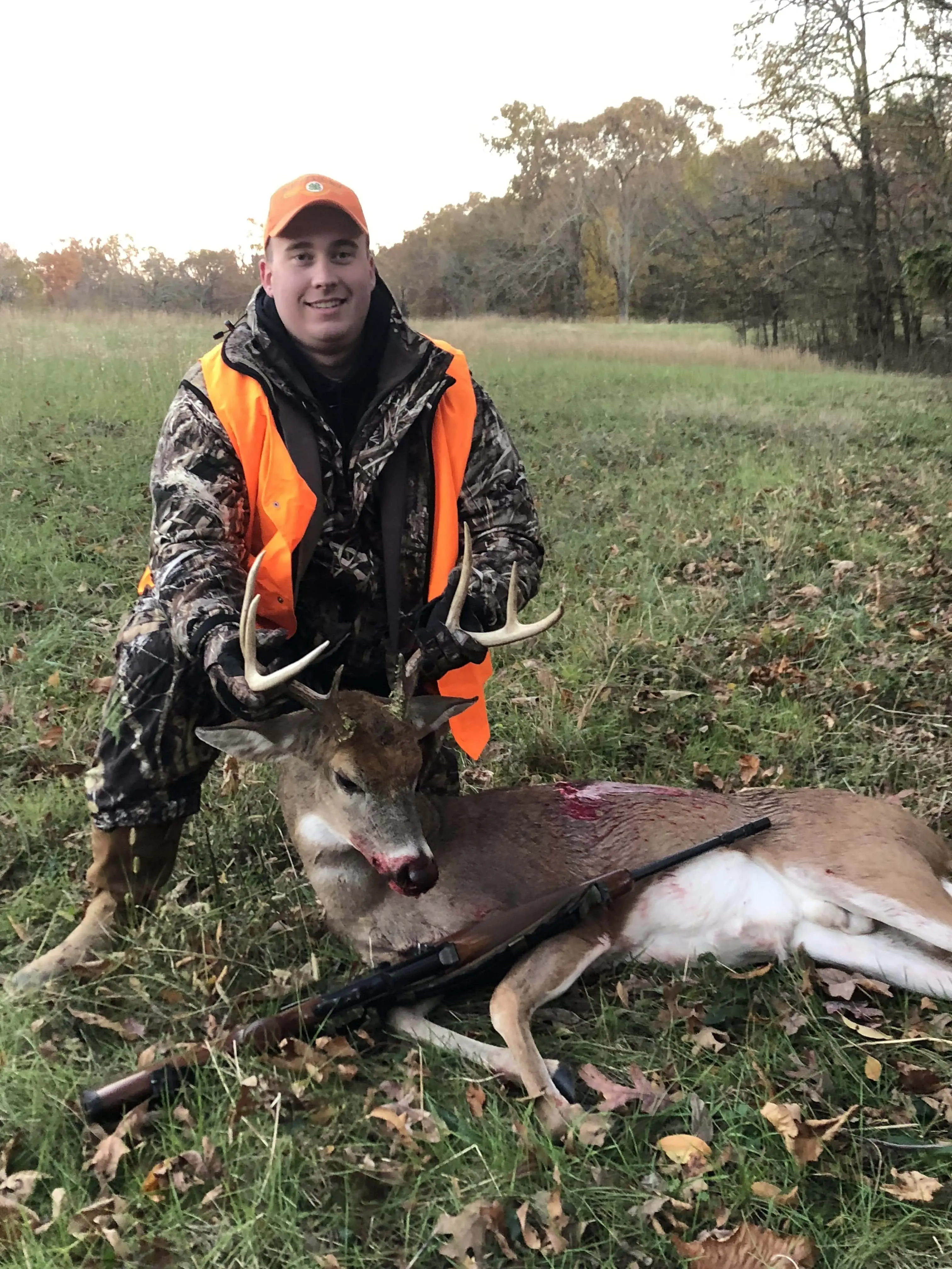 Logan is from Virginia Beach and recently moved to his girlfriend, Leanndra Thompson’s, hometown of Marshall County. His girlfriend’s dad, Tommy Thompson, was his guide for the day and helped him kill his first buck!