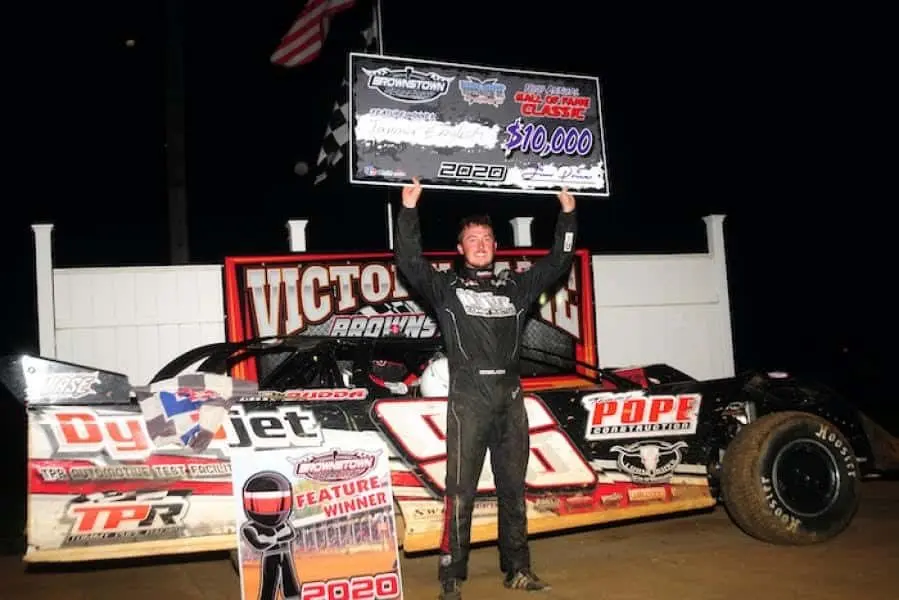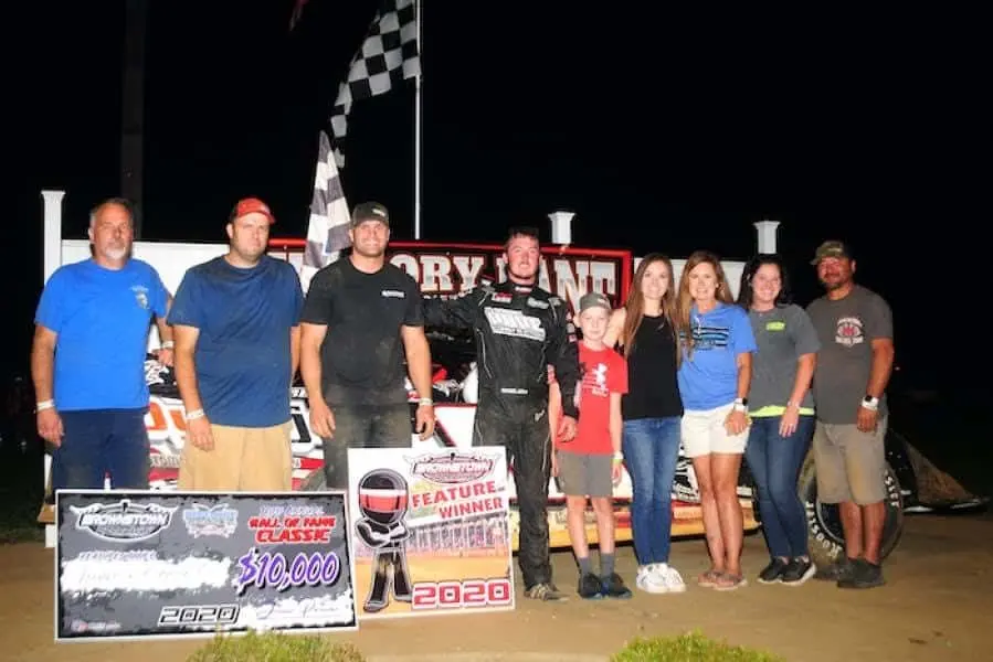 Four laps into the A-Main on the first caution, he had worked his way up to fifth and with two laps to go, took the lead to win the 50-lapper after a duel with Josh Rice of Verona, Ky. over the last three laps. This was English’s second trip to victory lane in the Hall of Fame Classic – winning in 2017.