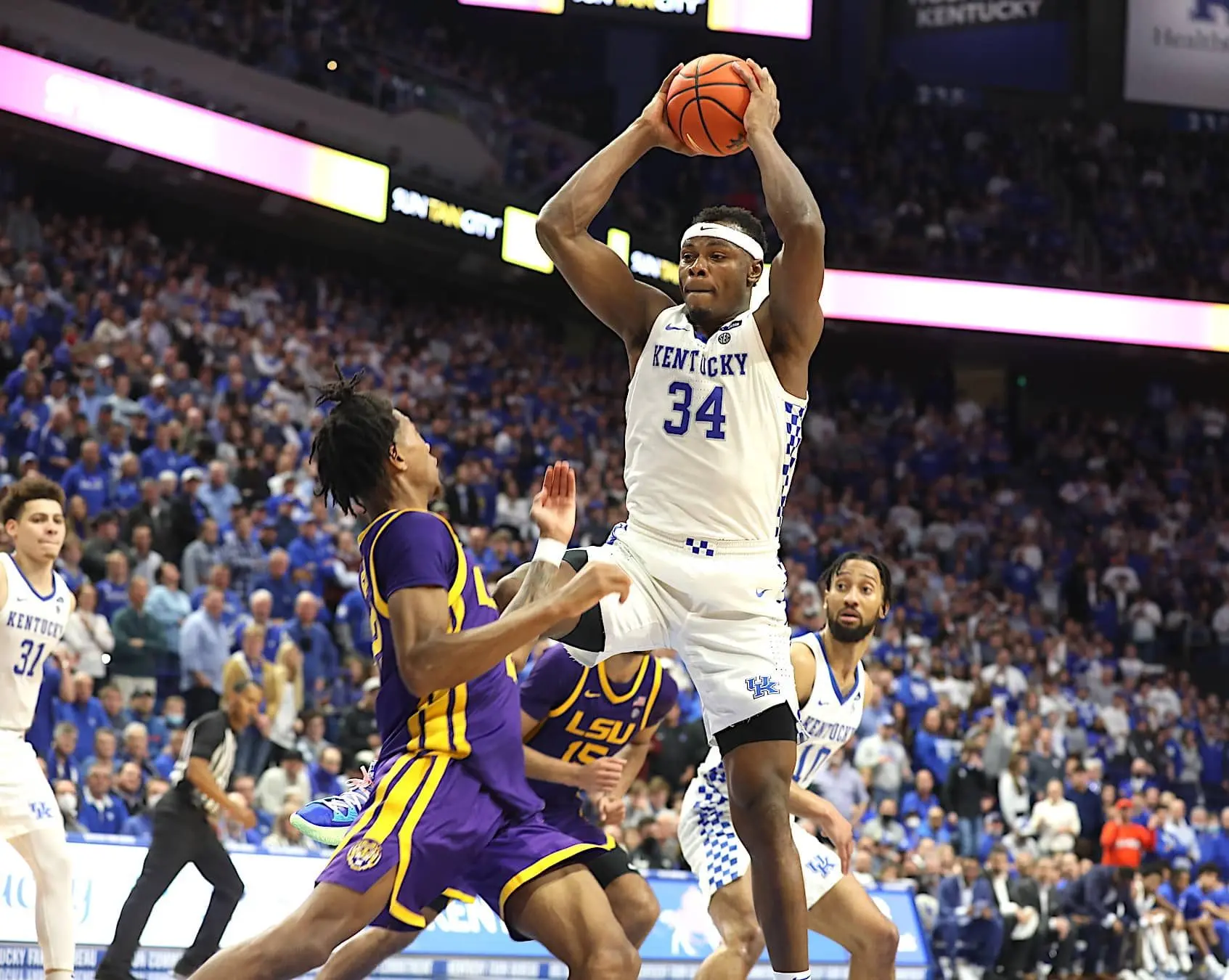 Only seven UK players have ever had 400 or more rebounds in a single season and Oscar Tshiebwe is one of them. After pulling off 18 rebounds against Arkansas, he has 445 this season — fourth best on the list and now ahead of Frank Ramsey (434), Julius Randle (417) and Anthony Davis (415).