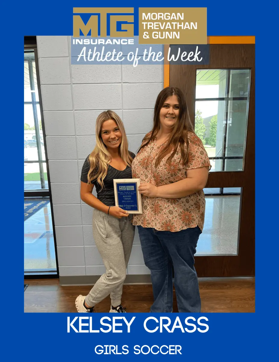 This week’s MTG Insurance Athlete of the Week is senior Lady Marshal soccer player Kelsey Crass. Crass scored both goals in their 2-1 win on Saturday over Clarksville, Tenn. and two on Tuesday in the Lady Marshals 4-2 win over Murray. She leads the team with 13 goals so far this season.