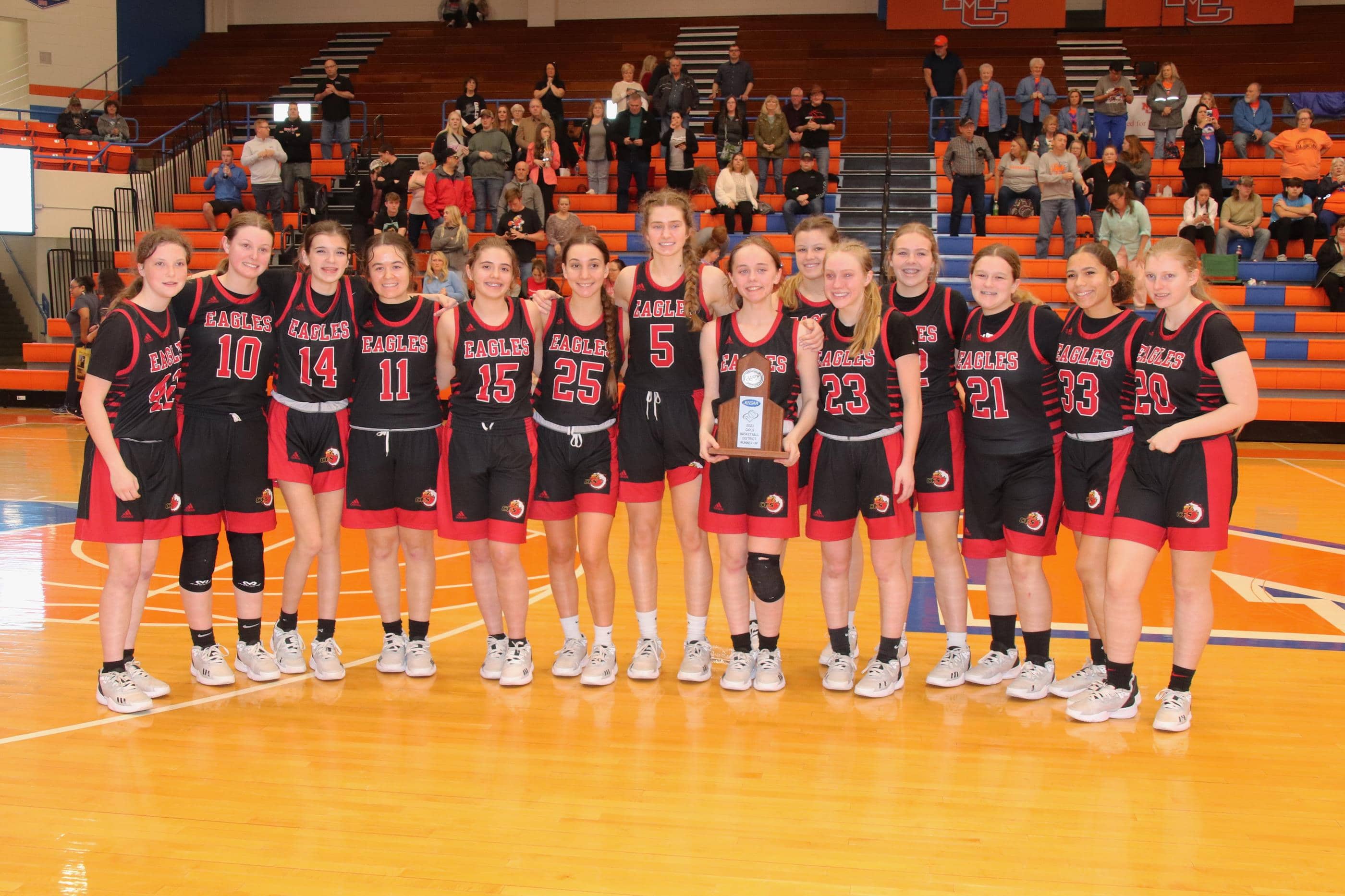 “I’ve cried more in the last two days…but they’re tears of joy”, Head Coach Trevor Jackson said of the Lady Eagles first-ever district championship appearance. “I’m a sucker when it comes to these girls. I know my daughter’s there but we’ve been with them since they were sixth graders. They’ve been playing varsity since they were seventh graders with this senior group.”