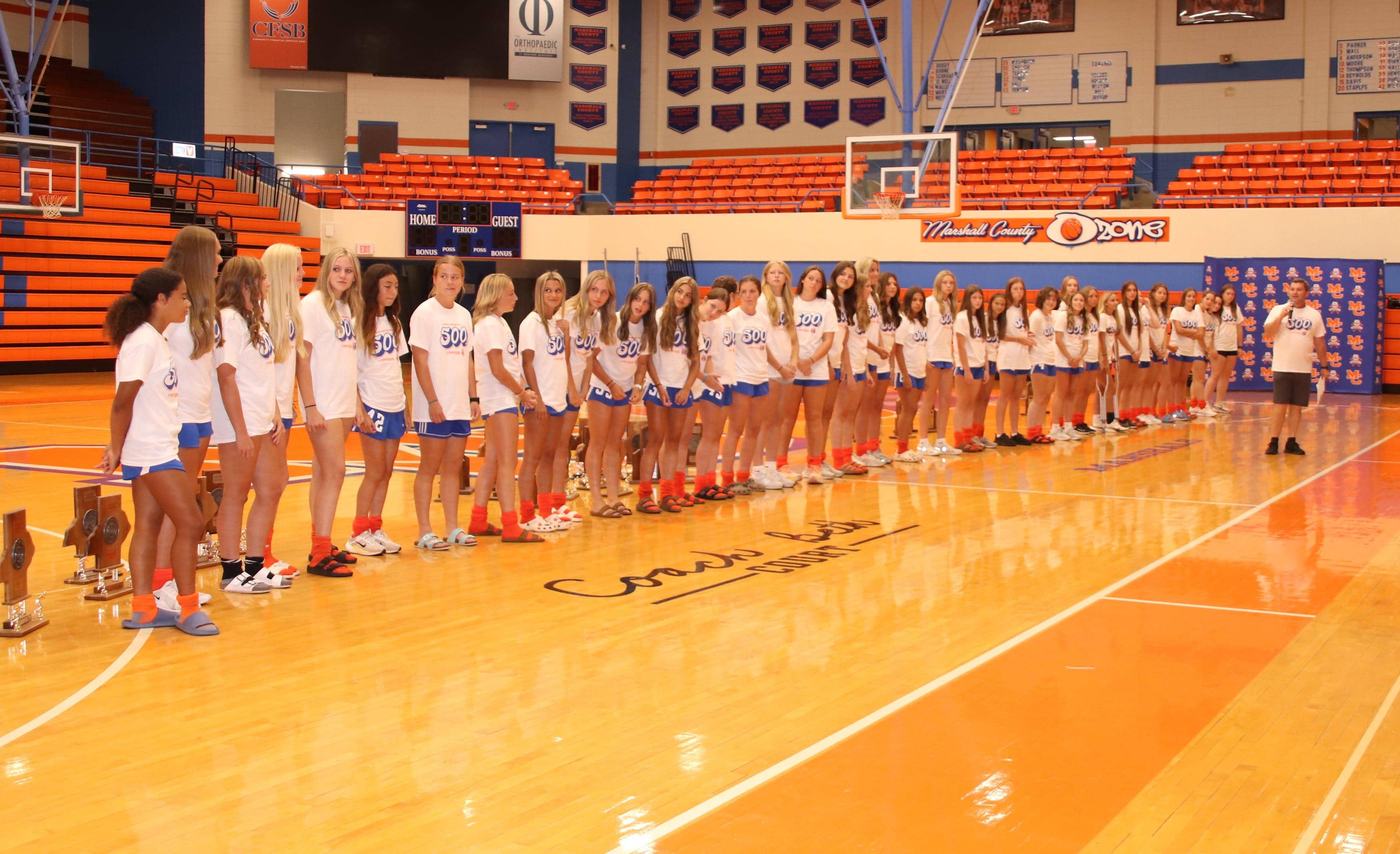“Marshall County is the only school in the state with both boys’ and girls’ programs reaching 500 wins”, Coach Boone said at Friday’s 500 wins celebration. The Marshals reached that milestone during their 2019 season. Boone said the Lady Marshals have the state’s highest win percentage at just under 75 percent.