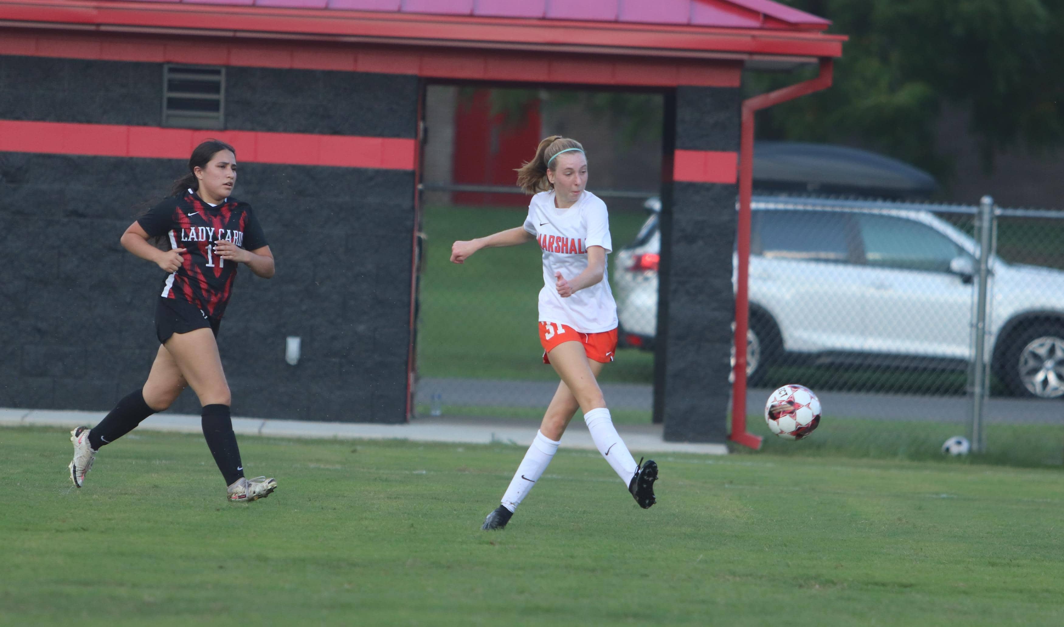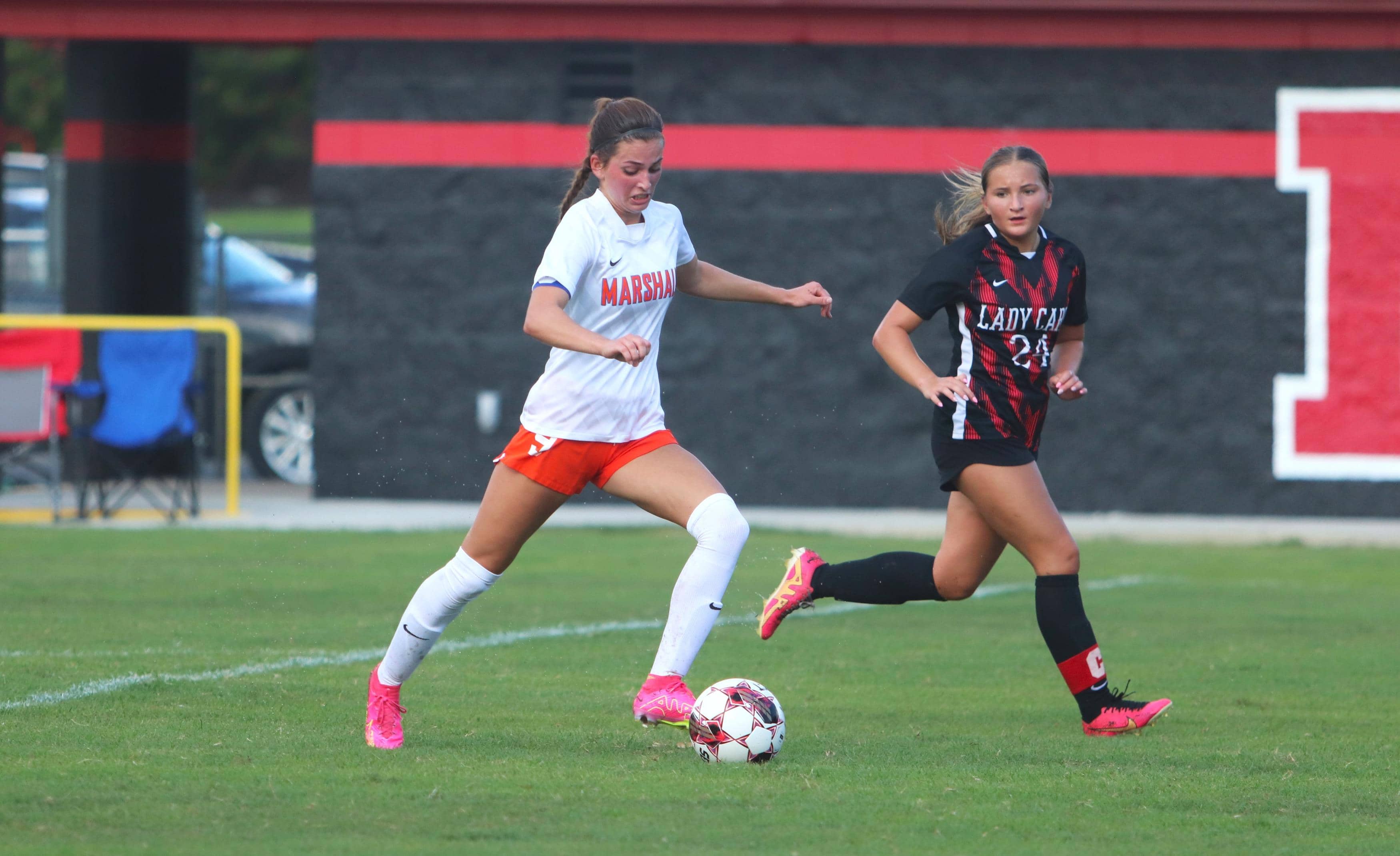 Senior Presley Gallimore scored the first three goals of the game for the Lady Marshals on assists from Anna Robertson and two by Macy Scott. Sophomore Chaney Green made it a 4-0 game at the midway point of the half before junior Mia McGregor earned her hat trick with three straight goals within five minutes for a 7-0 lead.