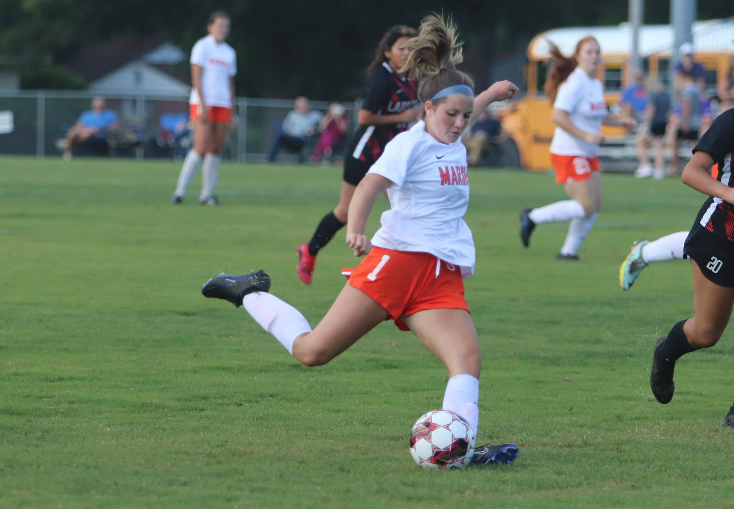 In the first game of the day, the Lady Marshals game ended in a 1-1 tie against Boyle County. Presley Gallimore scored eight minutes in and it would the only goal of the game for the Lady Marshals. Boyle County tied it early in the second half on a goal by freshman Mia Kilby and that’s where it remained until the final whistle. Goalkeeper Phoebe Ramsey had six saves for the Lady Marshals.