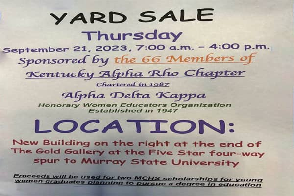 Yard sale September 21st Proceeds support local scholarships for future female educators.