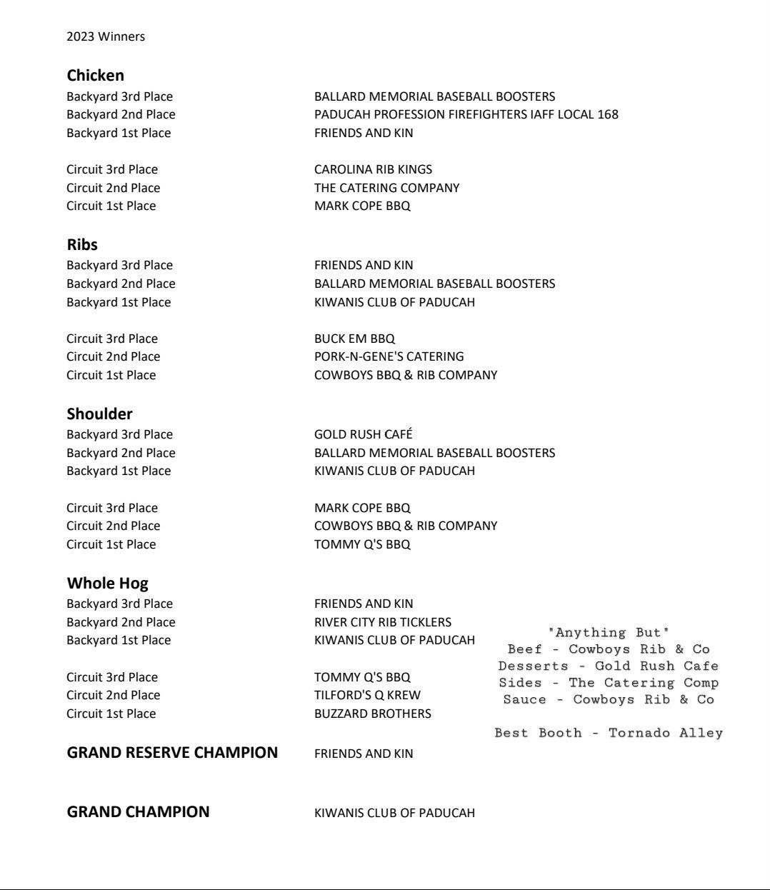 PADUCAH, KY — Barbecue on the River 2023 is officially over, and the big winners for the Best Barbecue have now been announced!