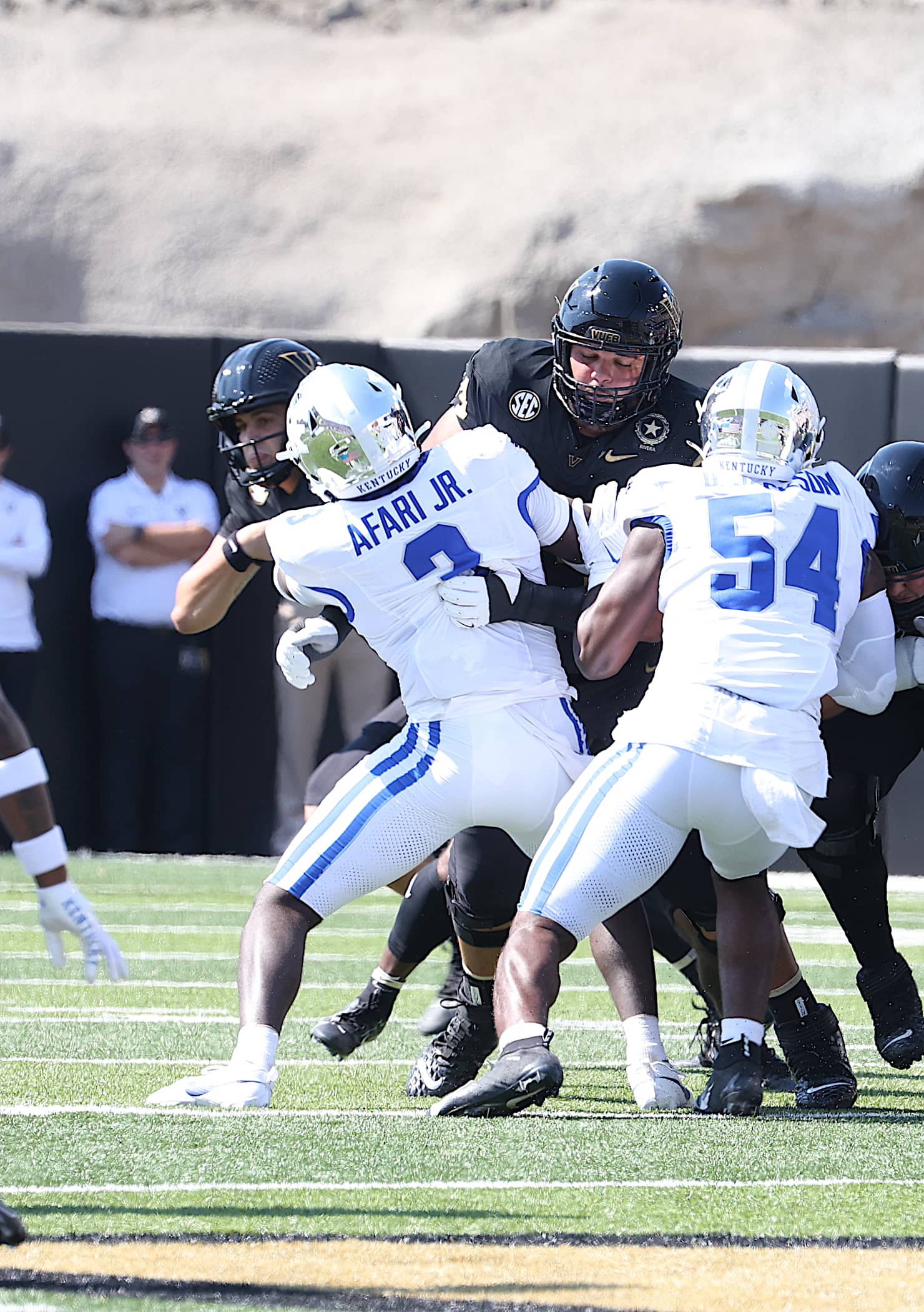 Kentucky sophomore defensive back Alex Afari of Cincinnati was a four-star recruit and top 250 nationally. He started three games as a true freshman in 2022 and had 21 tackles. He has started each game this season and has 13 tackles, including 1.5 tackles for loss, along with one forced fumble, one fumble recovery and one quarterback hit going into the Florida game.
