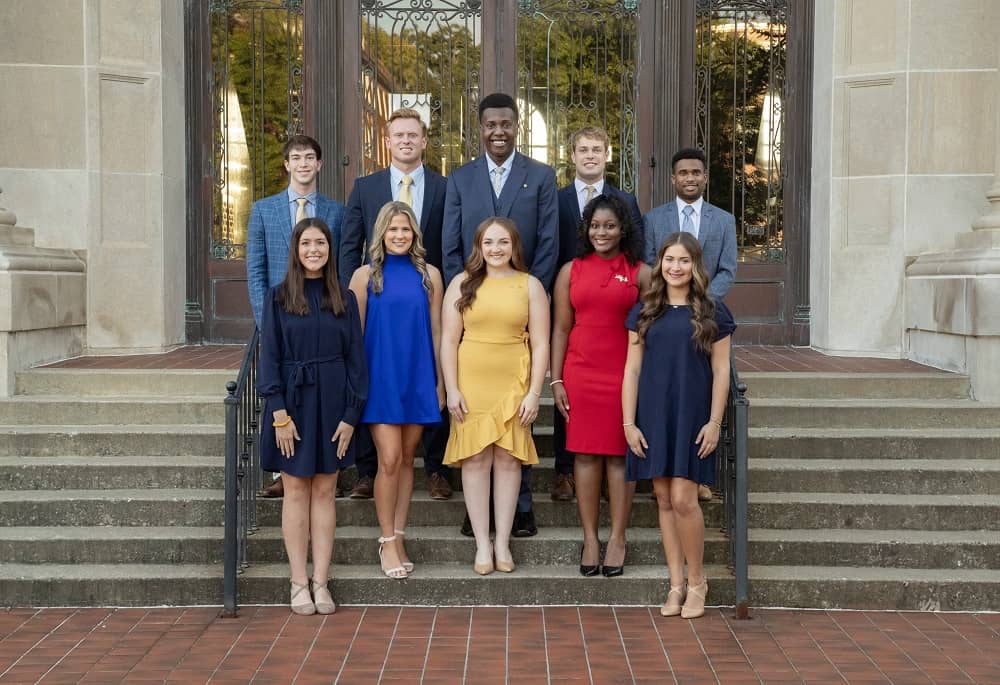 Murray State University 2023 Homecoming Court in the back row from left to right: Cole Wells, Bradley Dawson, Jaylon Taggart, Luke Wyatt, Tiler Ware. Pictured in the front row from left to right: Hannah Erikson, Clauda Sweeney, Mallory White, Anjel Echols, Callie Hart.