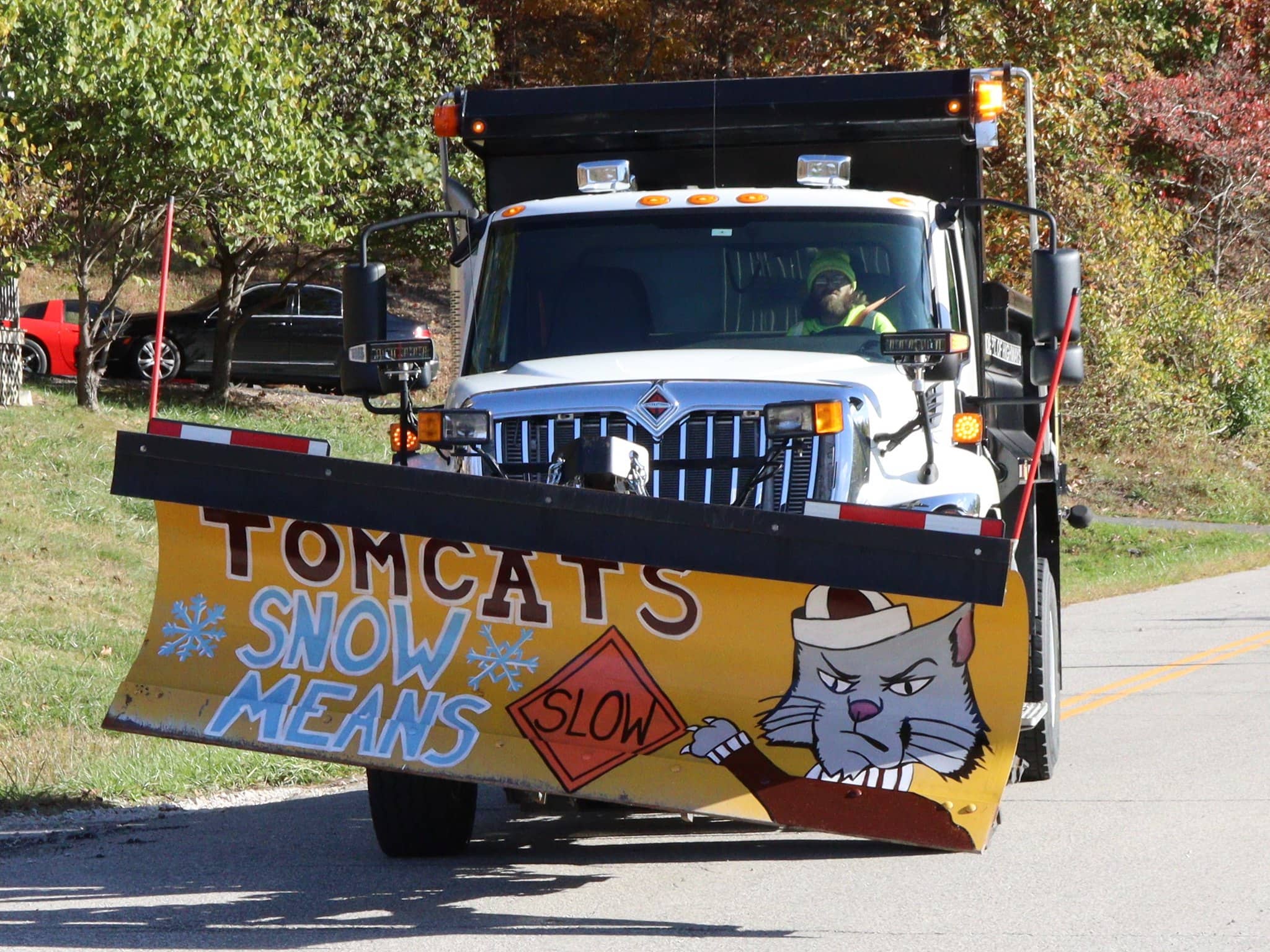 FRANKFORT, Ky. (Nov. 9, 2023) – State “snow fighter” highway crews are equipped, ready and waiting for winter in Kentucky. While supplies and staff are equipped, drivers are reminded to join the effort to keep roadways safe. To help, high school students from across Kentucky participated in the first statewide “Paint the Plows” program to elevate not only the look of select state trucks, but the message of safe driving behavior.
