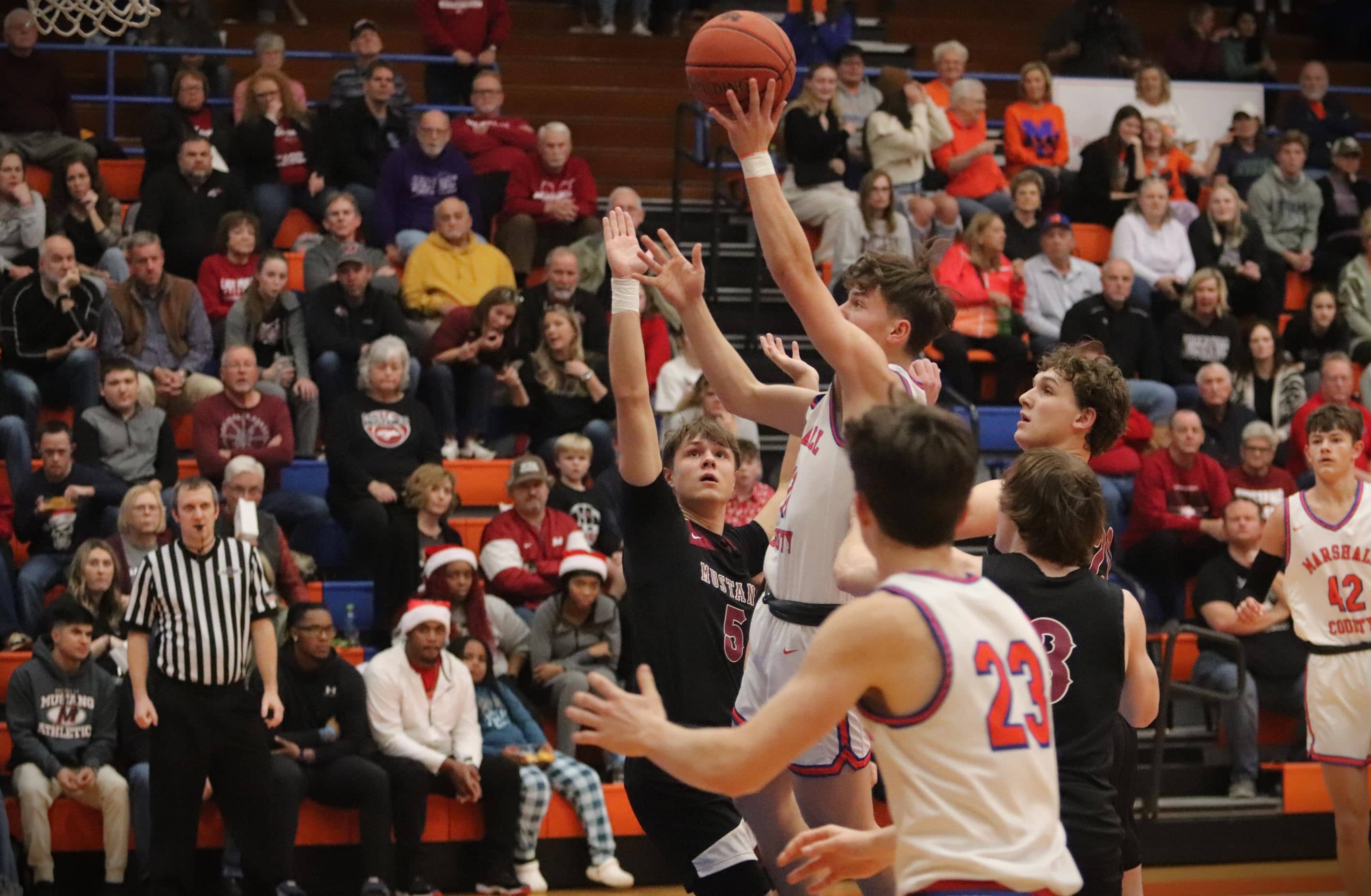 The Mustangs trimmed the Marshals lead down to six points at 39-33 late in the third quarter but a coast-to-coast trip by Kayden Mohler gave them an eight-point lead heading into the fourth quarter.