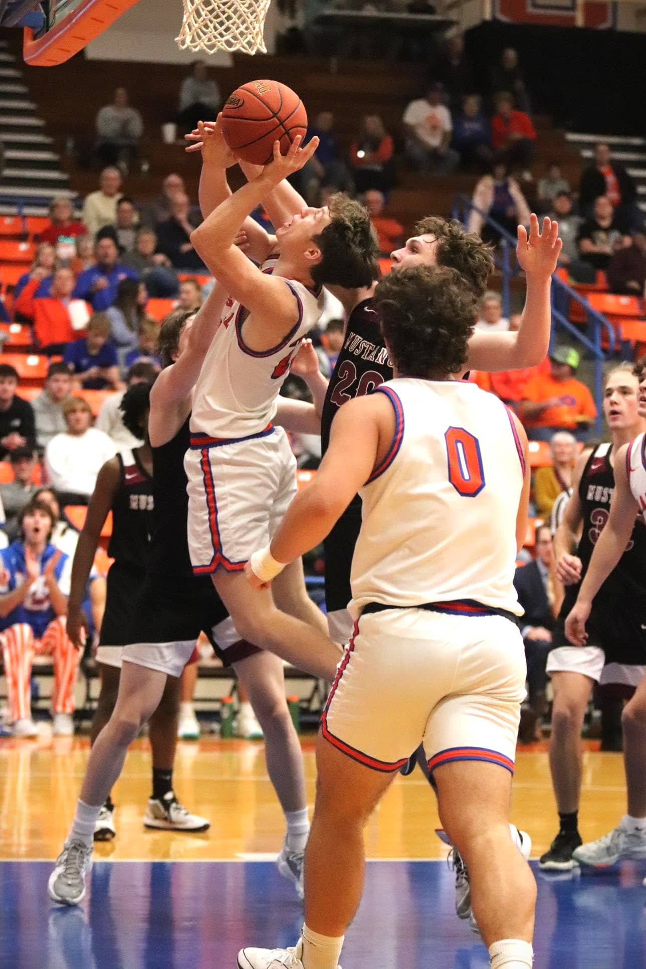 Both teams put up 18 points in the final eight minutes. The Mustangs stayed within reach on three 3-pointers, two by Jay Martin who trimmed the game to five points at 48-43 with three minutes remaining.