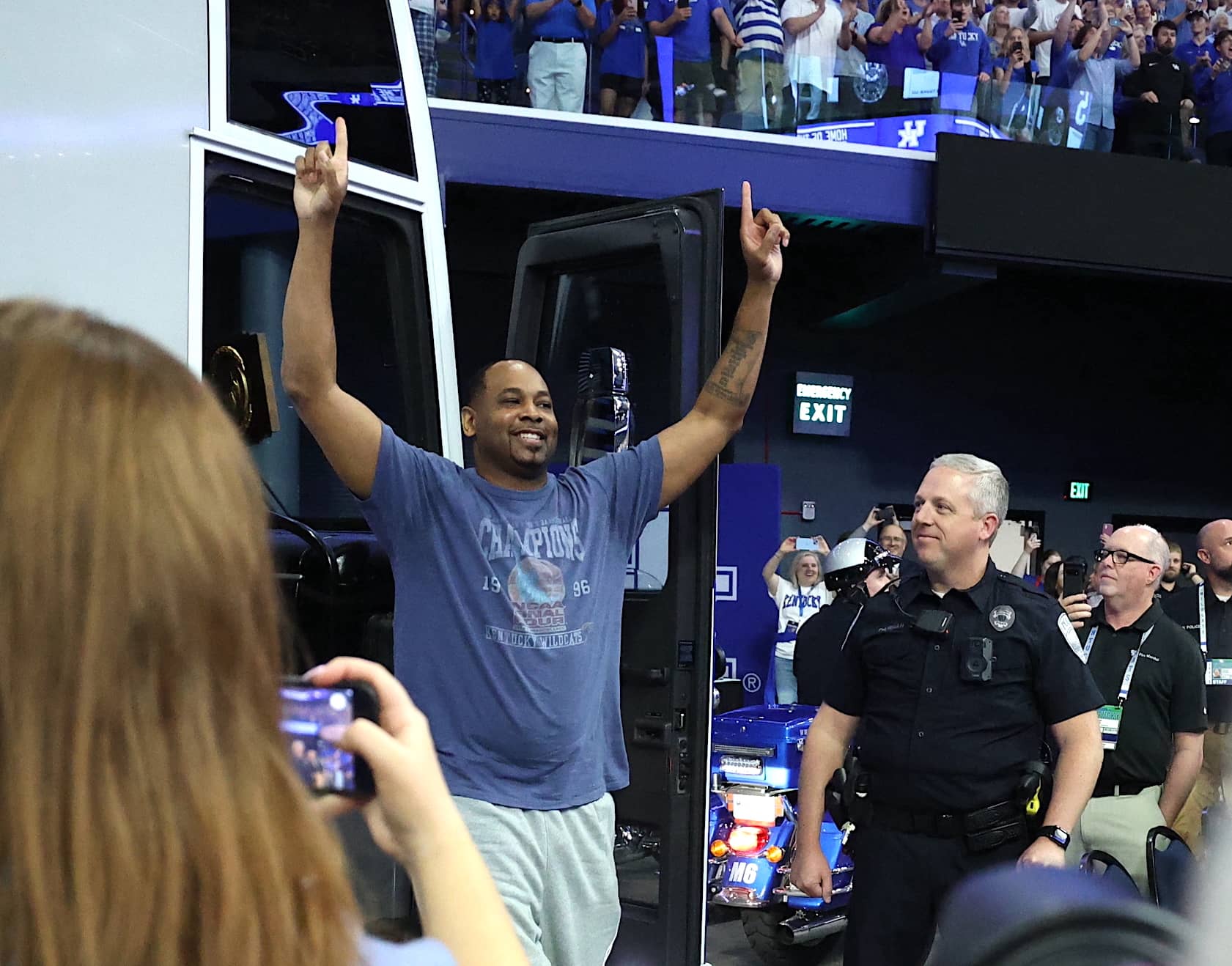 Maybe that’s why Pope gave the national championship trophy to Anderson to hold after the new coach carried it off the bus when it rolled into Rupp Arena to mimic UK’s 1996 national championship reception.