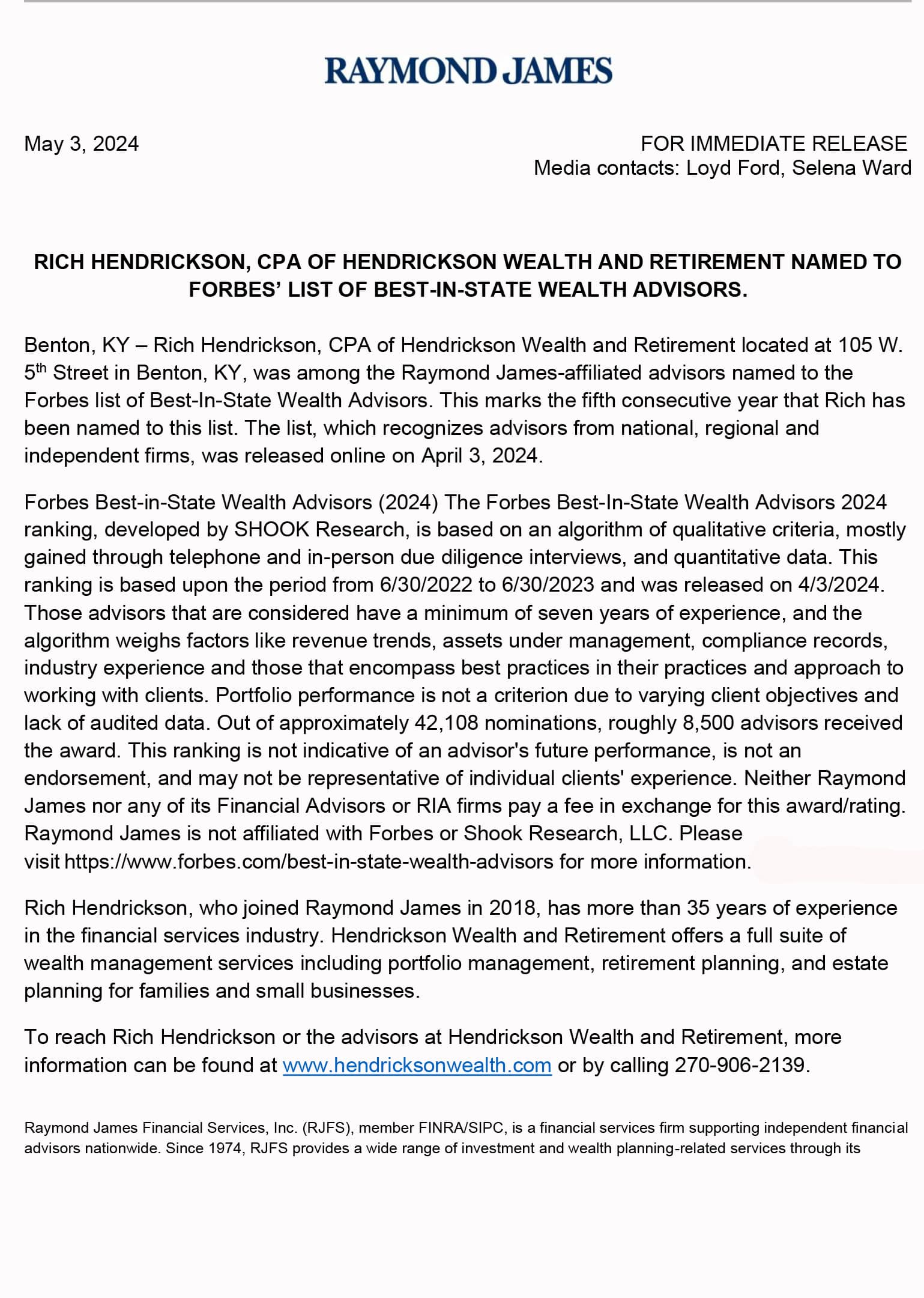 Rich Hendrickson–Named to Forbes Best in State Wealth Advisors