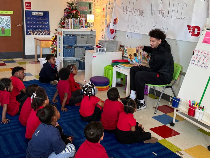 He spent time with kindergarten and first grade students in Dayton reading about resiliency and talking about the importance of giving a great effort every day in school. He autographed art projects for the students before leaving.