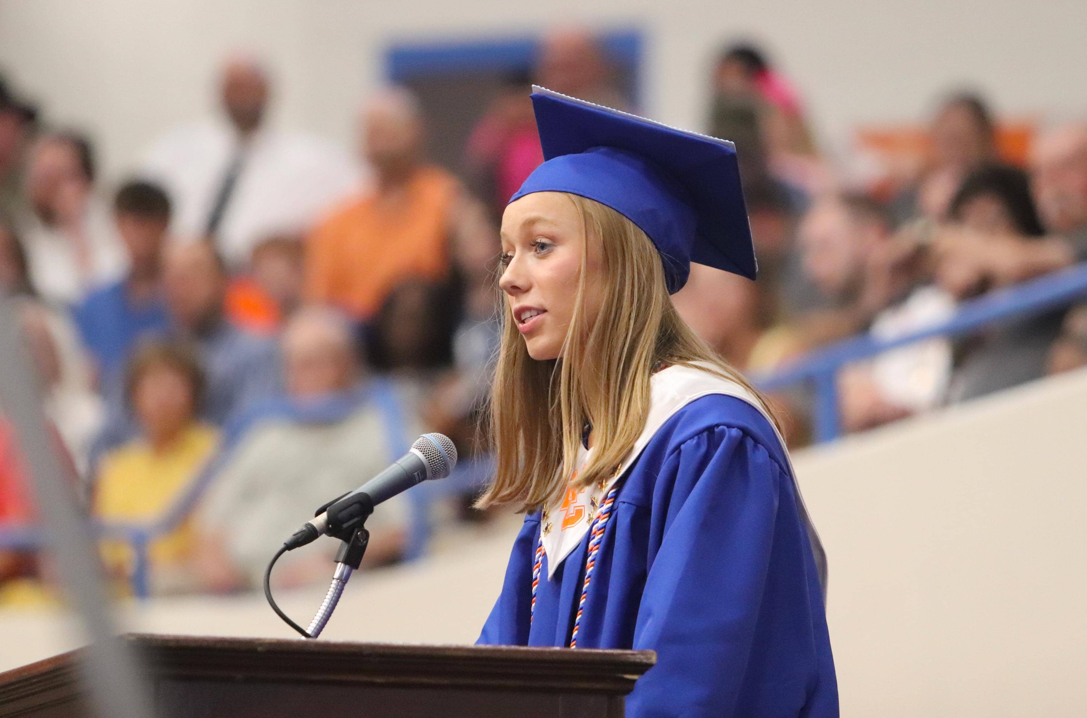 Principal Shannon Solomon delivered a welcome message followed by the National Anthem played by the Marshall County High School band. Senior Addresses were delivered by Presley Gallimore and Isabelle Washburn before the Presentation of Graduates and Conferring of Diplomas.