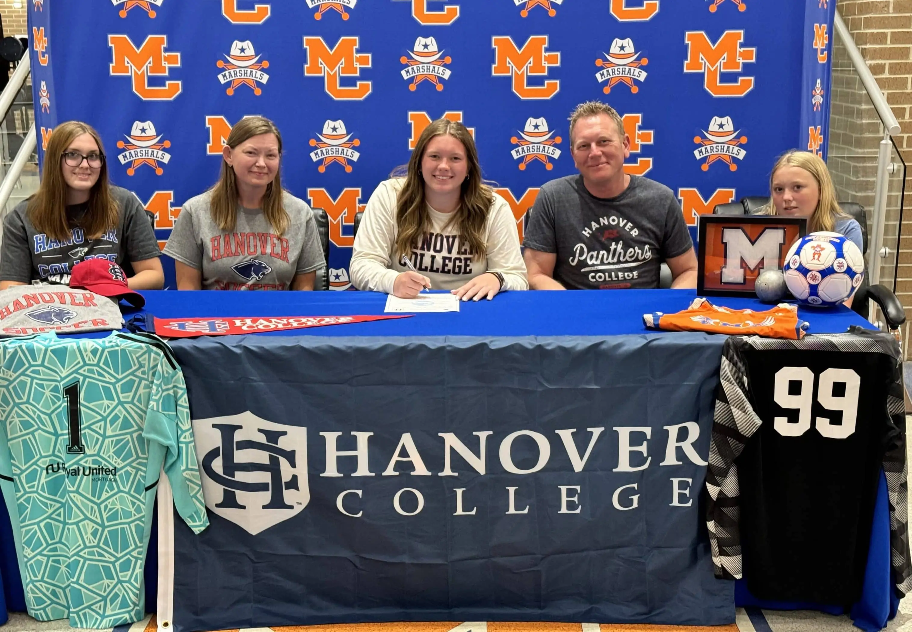 Marshall County’s Phoebe Ramsey signed on Tuesday to continue her soccer and track and field careers at Hanover College in Hanover, Indiana. The Panthers play in the Heartland Conference.