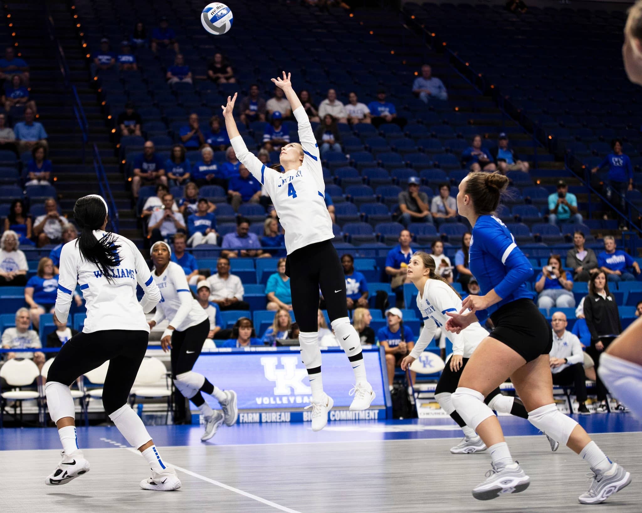 “She is 5-8 and most setters are bigger and taller,” Skinner said. “She’s little like (former UK basketball star point guard) Tyler Ulis, but she can also see things develop like he did. She is always totally confident in her ability to deliver and goes about her business that way.”