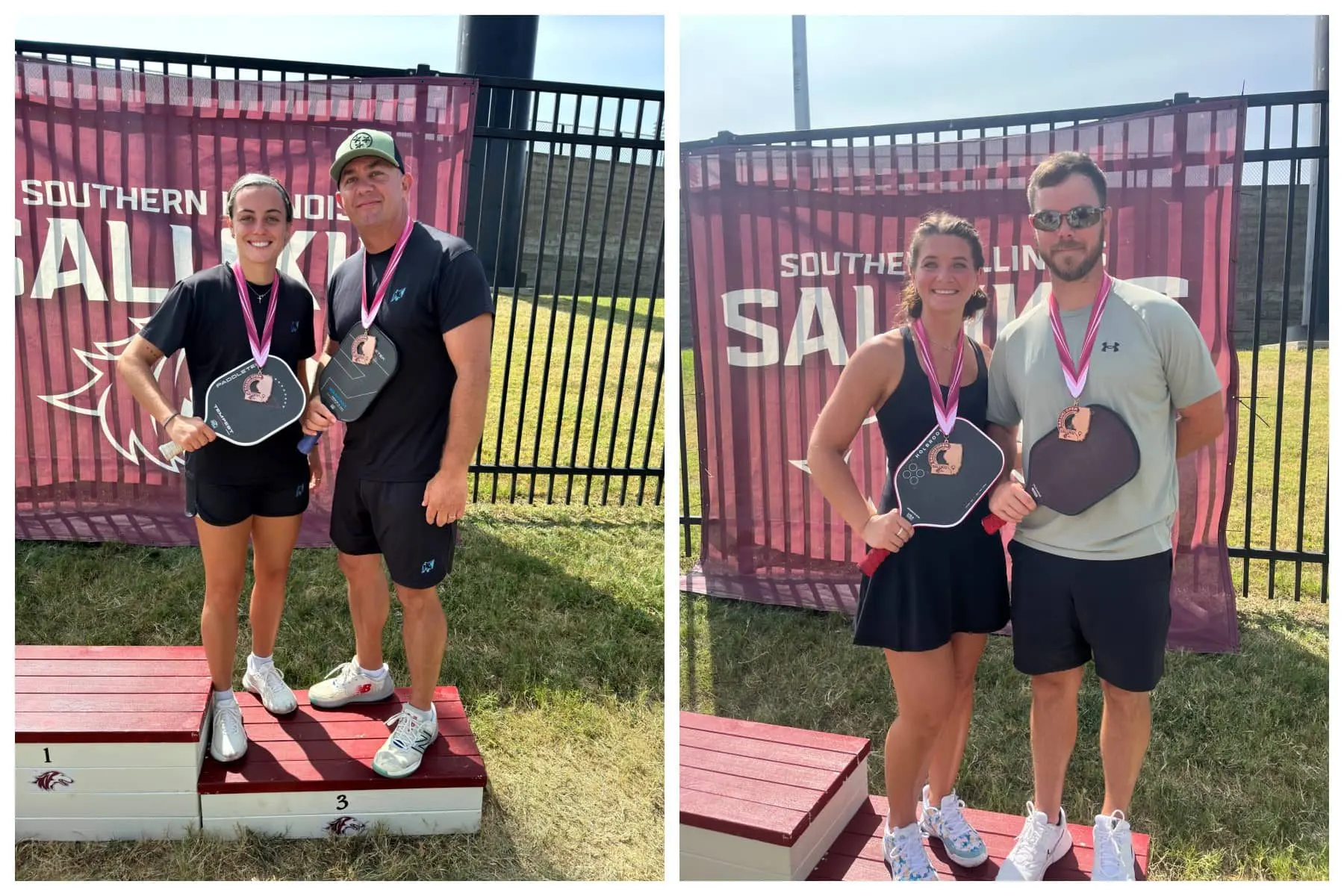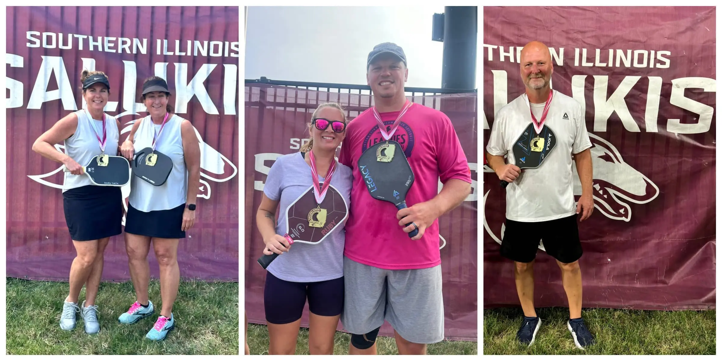 It was a beautiful weekend for pickleball players from Western Kentucky to go to Carbondale, Illinois to participate in the Saluki Open September 6-8, 2024. With 215 entries over three days, players competed in Men’s and Women’s Singles, Men’s and Women’s Doubles and Mixed Doubles in 2.5 to 4.5 divisions. Lynne Davis and Dannette Baker went undefeated in 2.5 Women’s Doubles to win Gold. Shane Cosby went 4 and 1 in pool play to take it all in the medal round and win Gold. This was the first ever tournament for Lynne Davis, Julie Hill, Zack Thomas, Colby Loveless, Austin Loveless, Meaghan Lambert and Ross Lambert to play. Medals didn’t reflect all the great showing in all events for our players that placed in the top half of their events where most events had uppers of 20 competitors.