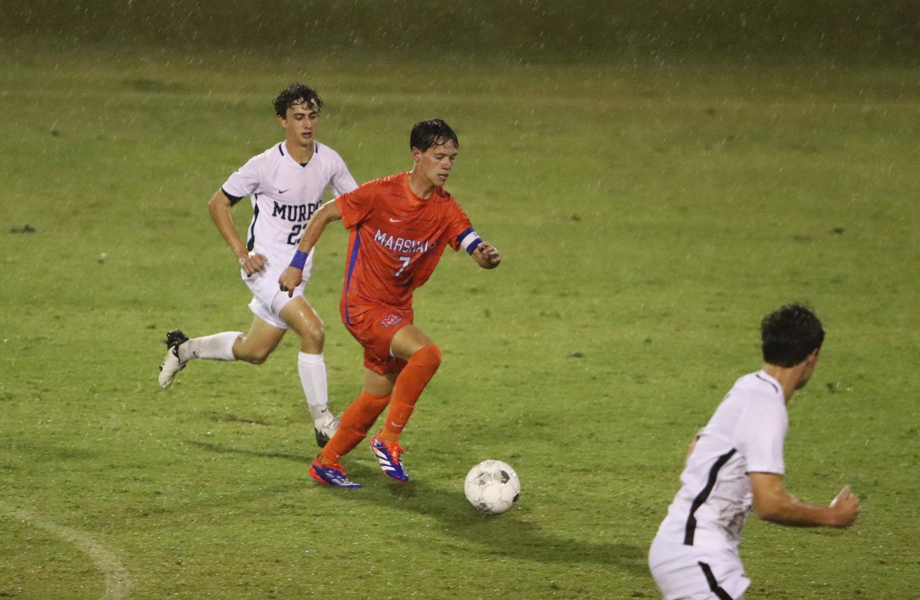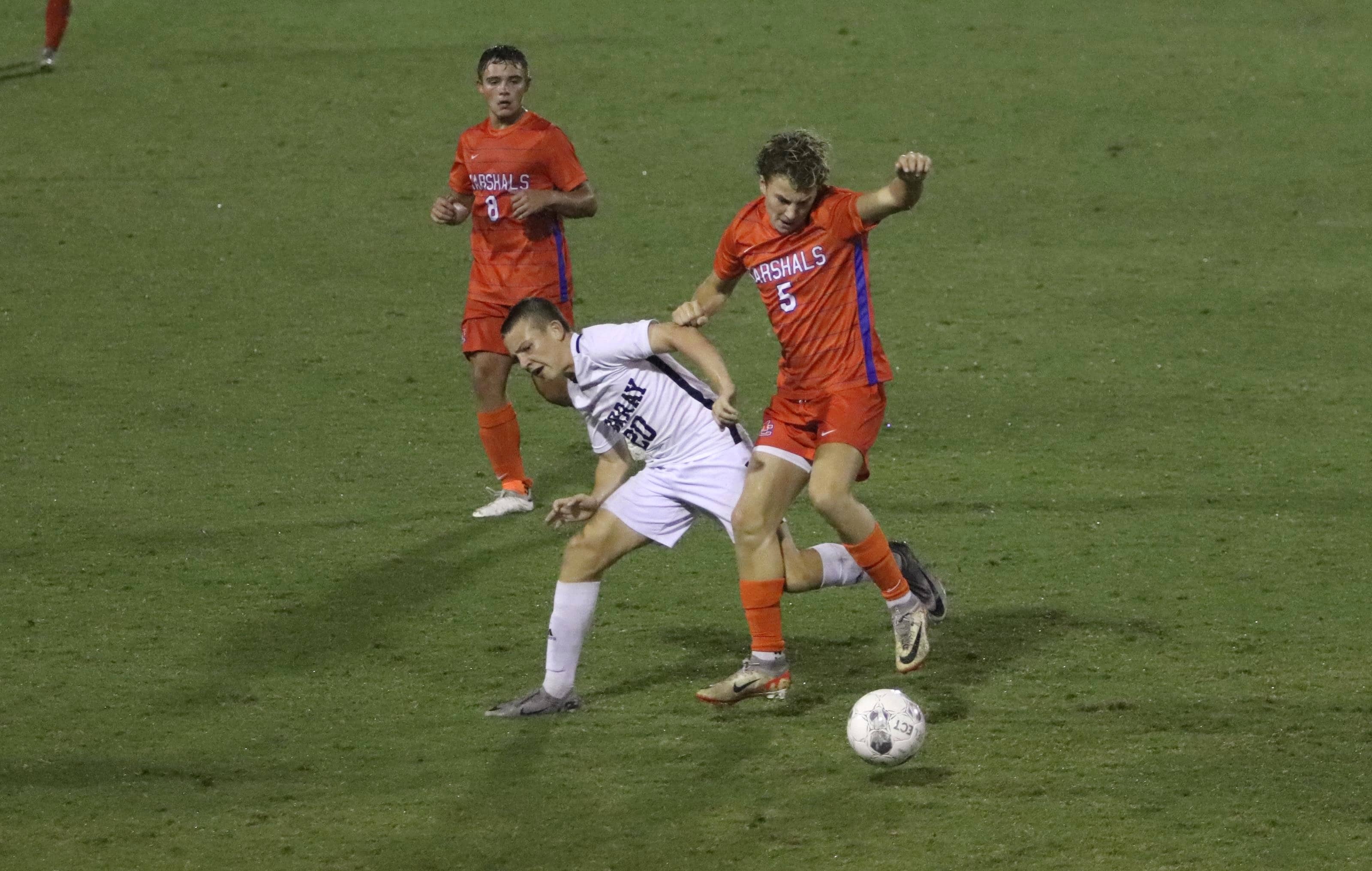 Just under eight minutes into Thursday’s rain drenched game covered in the remnants of tropical storm Francine, the Marshals struck first on a goal that found the net off the back of sophomore Davis Hunt.