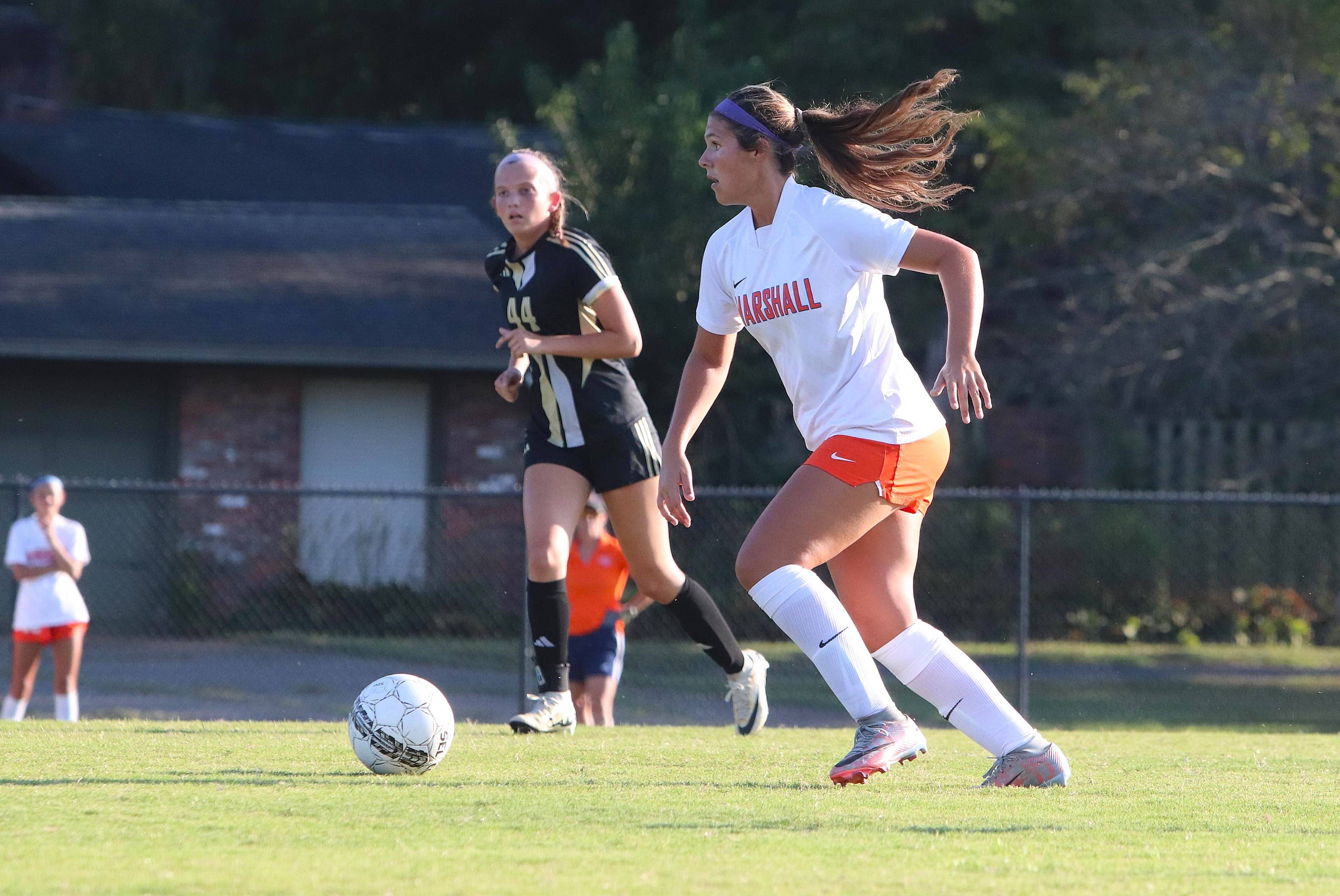 Tuesday in Mayfield, the Lady Marshals led 1-0 at halftime on a goal by Macy Scott off a corner kick by Rylee Teague.
