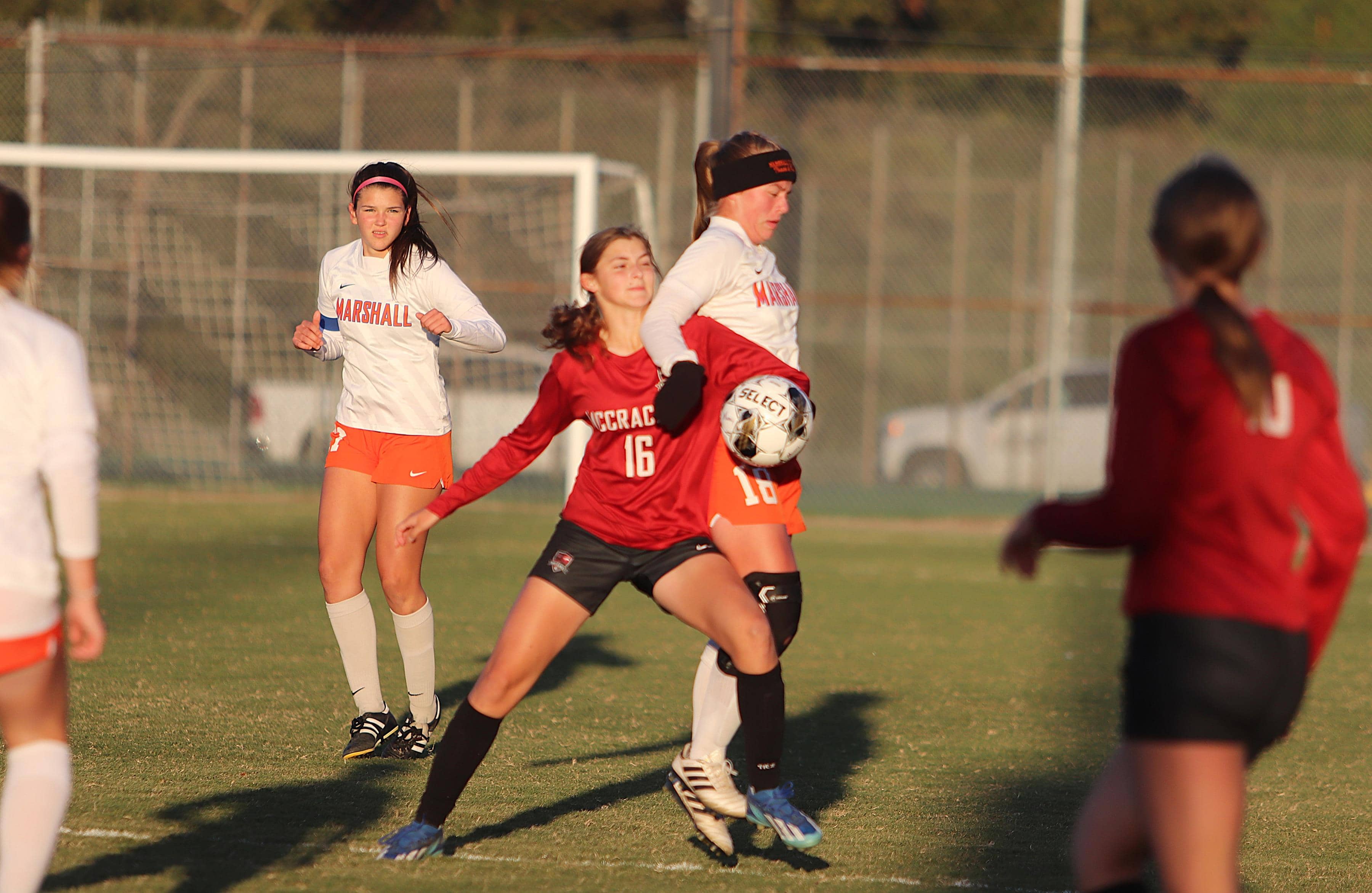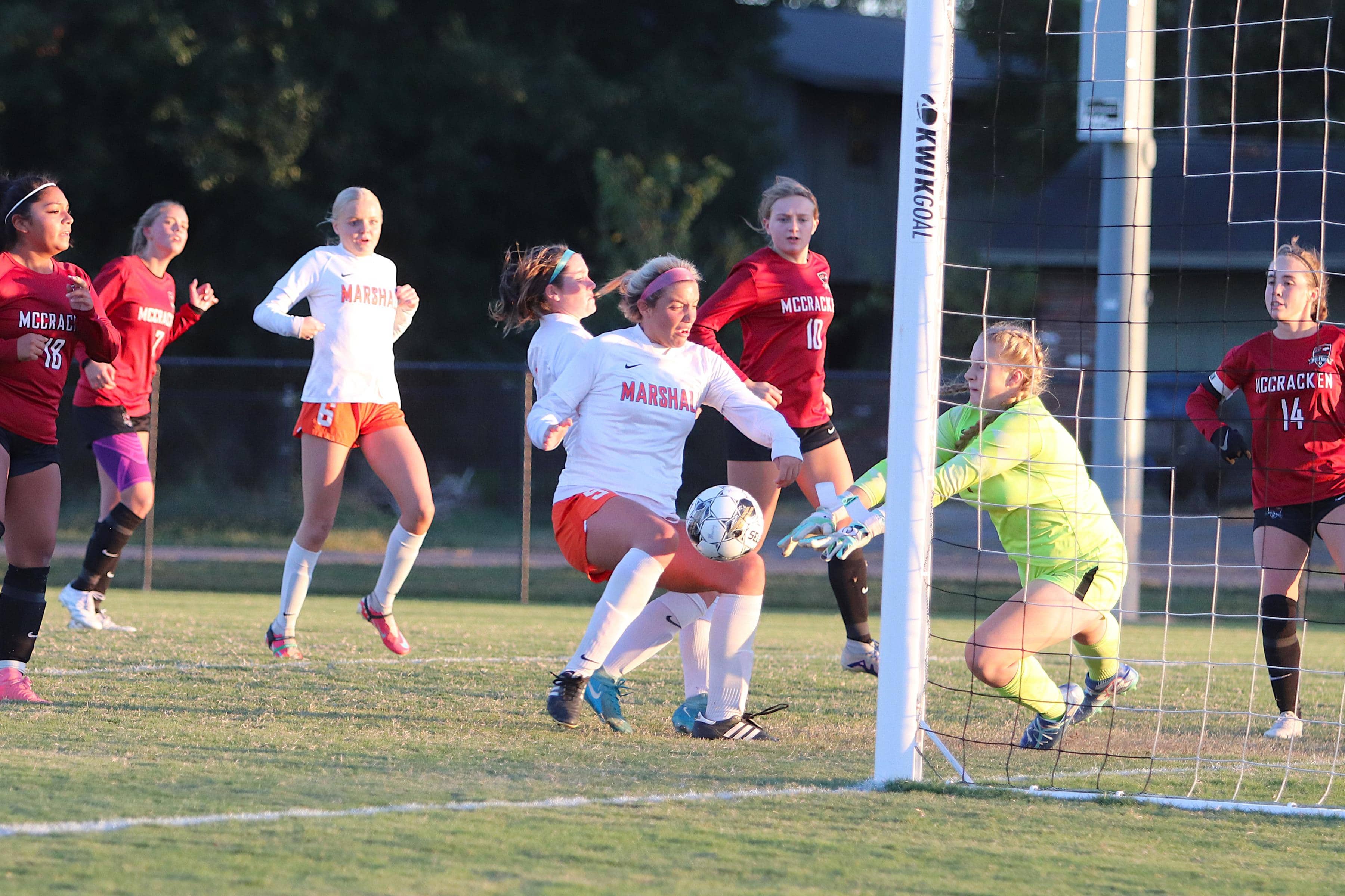 Addi Wall broke through with the first goal of the game off a corner kick by Rylee Teague to get the Lady Marshals on the board just over two minutes into the second half. London Lockhart doubled the Lady Marshals lead around the 25-minute mark.