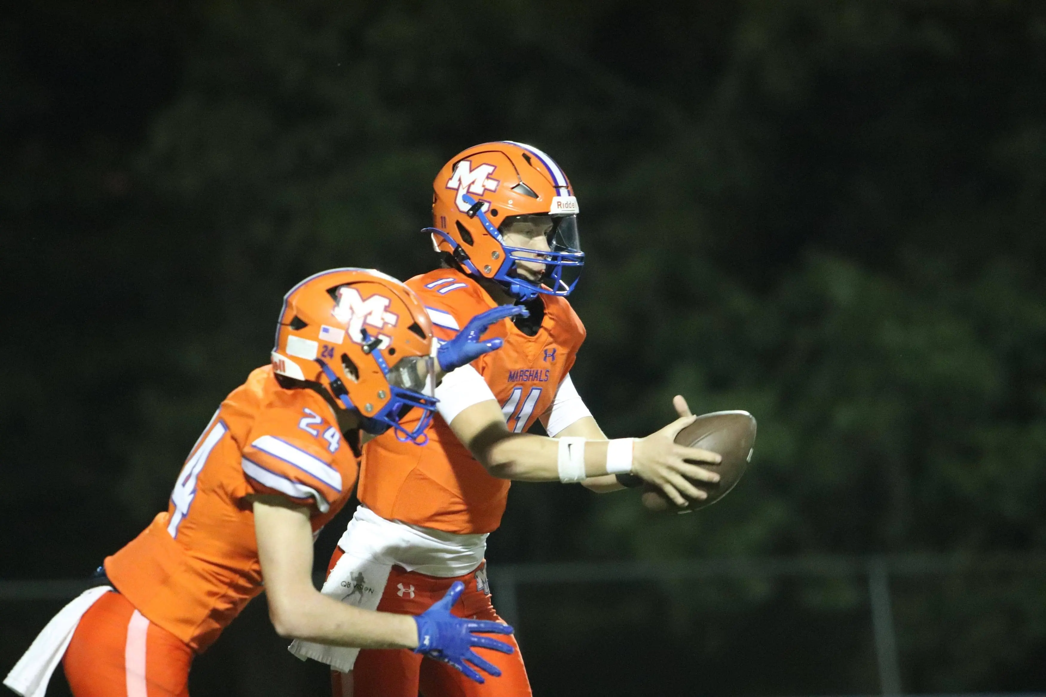 An unsuccessful punt fake by the Marshals set the Eagles up with just 35 yards between the line of scrimmage and the endzone. After a 20-yard touchdown was brought back on a holding penalty to start the fourth quarter, the Eagles went on to score from one yard out on a carry by Brady Rozzell and the lead was 16-7.