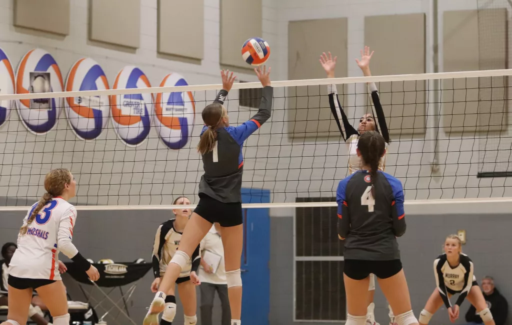 In the first set, the Lady Marshals took an early 4-0 lead in part on a kill from Kylie Merrick and ace by Emma Reynolds. Murray charged back and tied the game up at 4-4 on a kill by Macy Chiles.