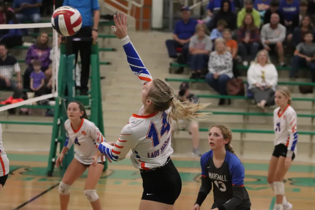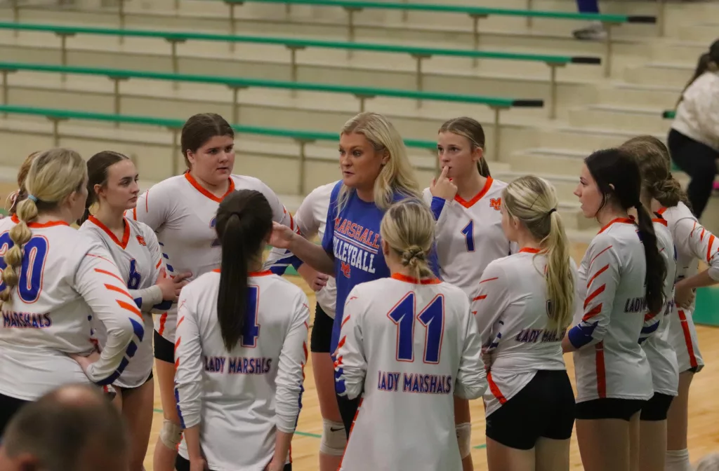For the Lady Marshals, Hawkins led in kills with 16, Yates had eight, Shelton seven, Redden six and Merrick four. Maleah Terry had 21 digs, Hawkins 21 and Reynolds 20. Reynolds had 27 assists. Carmichael and Hadley Barrett had two aces each.