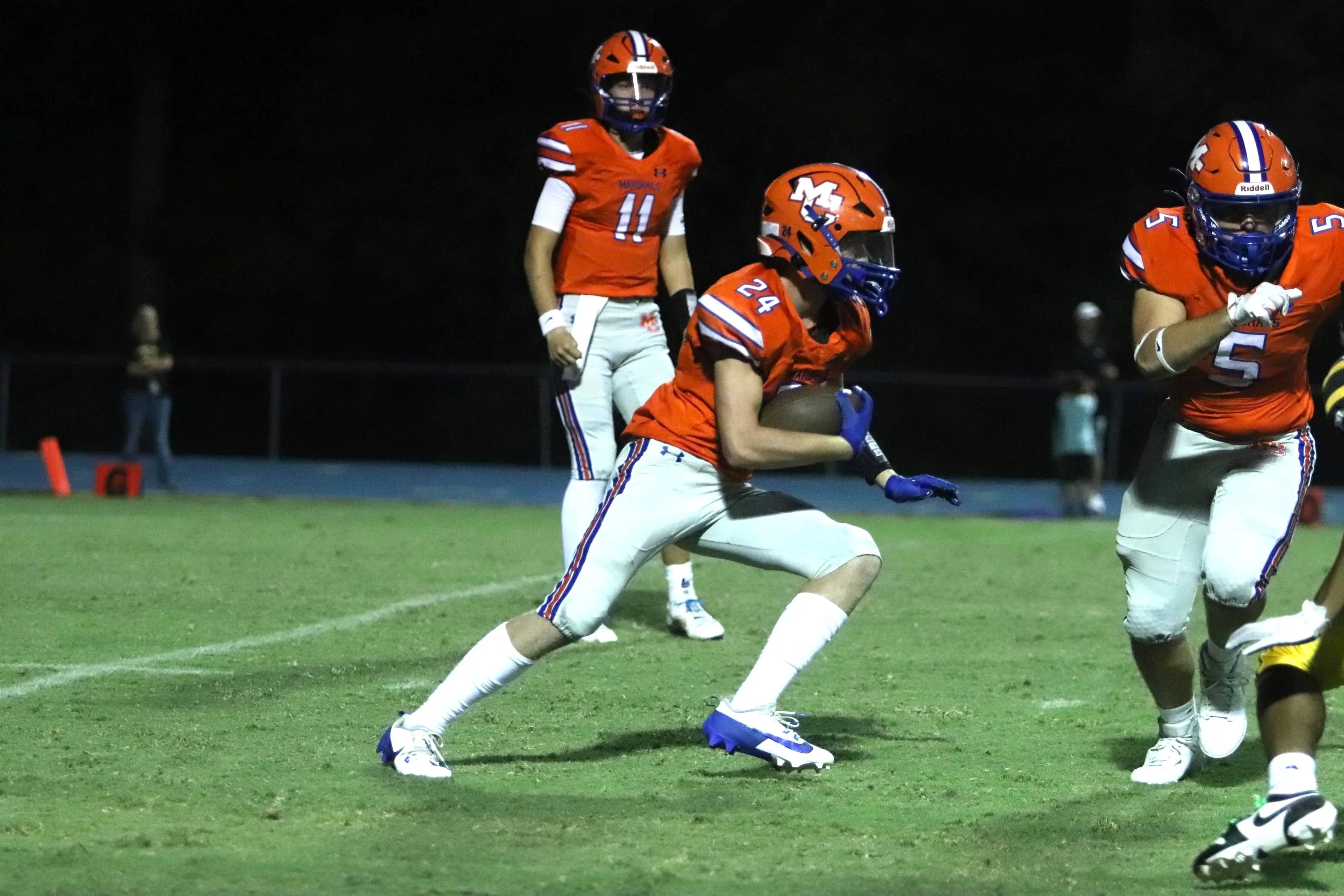 Marshall County answered on their next drive, putting seven points up. The drive was set up on a kick return by Redmond to midfield. A couple of nice gains by Jake Thomasson preceded a 36-yard touchdown reception by Cash Henson from Neyland Jezik. Robertson added the point after and they trailed 8-7 at halftime.