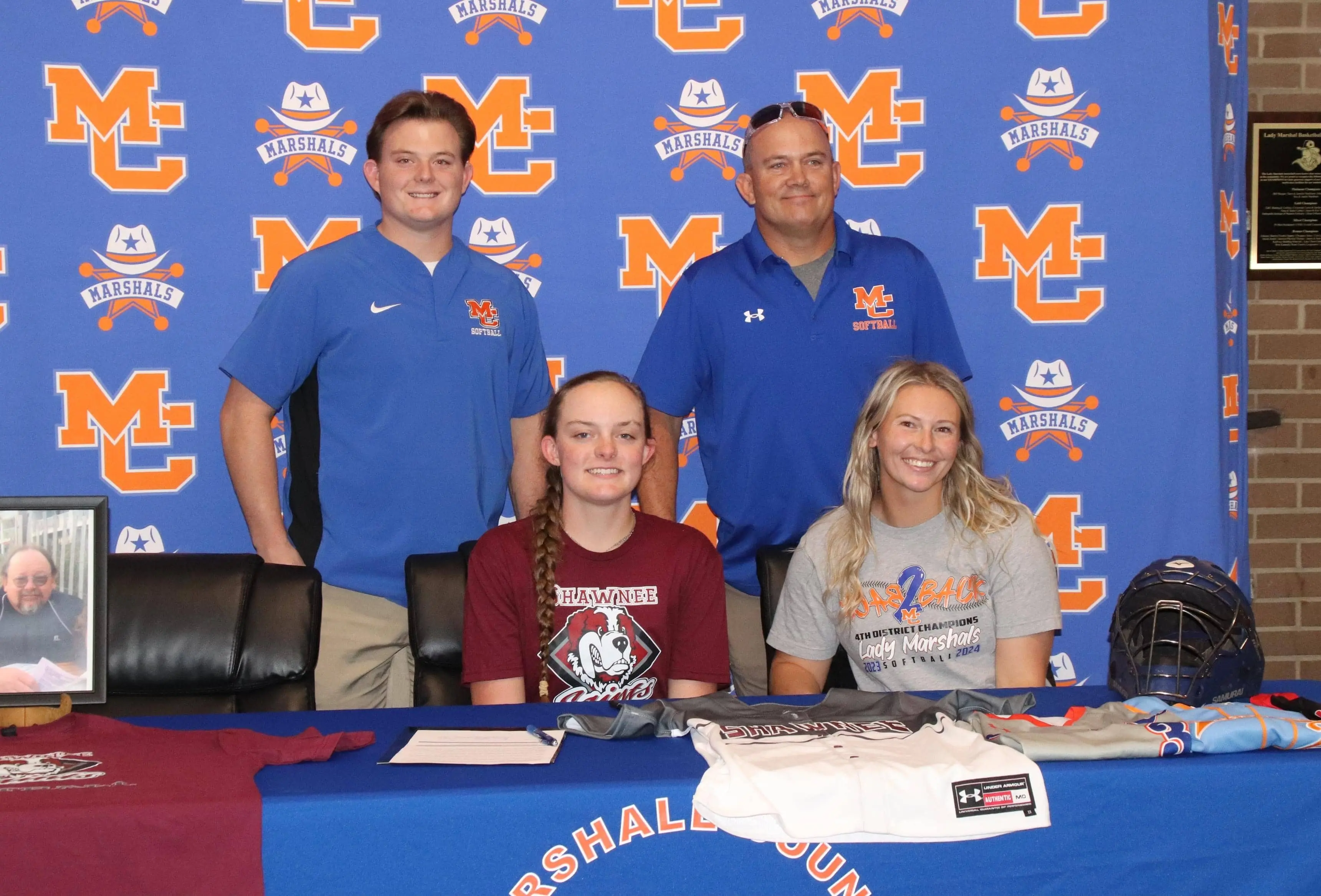 Marshall County softball player, Merriel Jackson, signed her letter of intent to play softball at Shawnee Community College in Ullin, Illinois. Shawnee is a member of the National Junior College Athletic Association and the softball head coach is Kyle Smith.