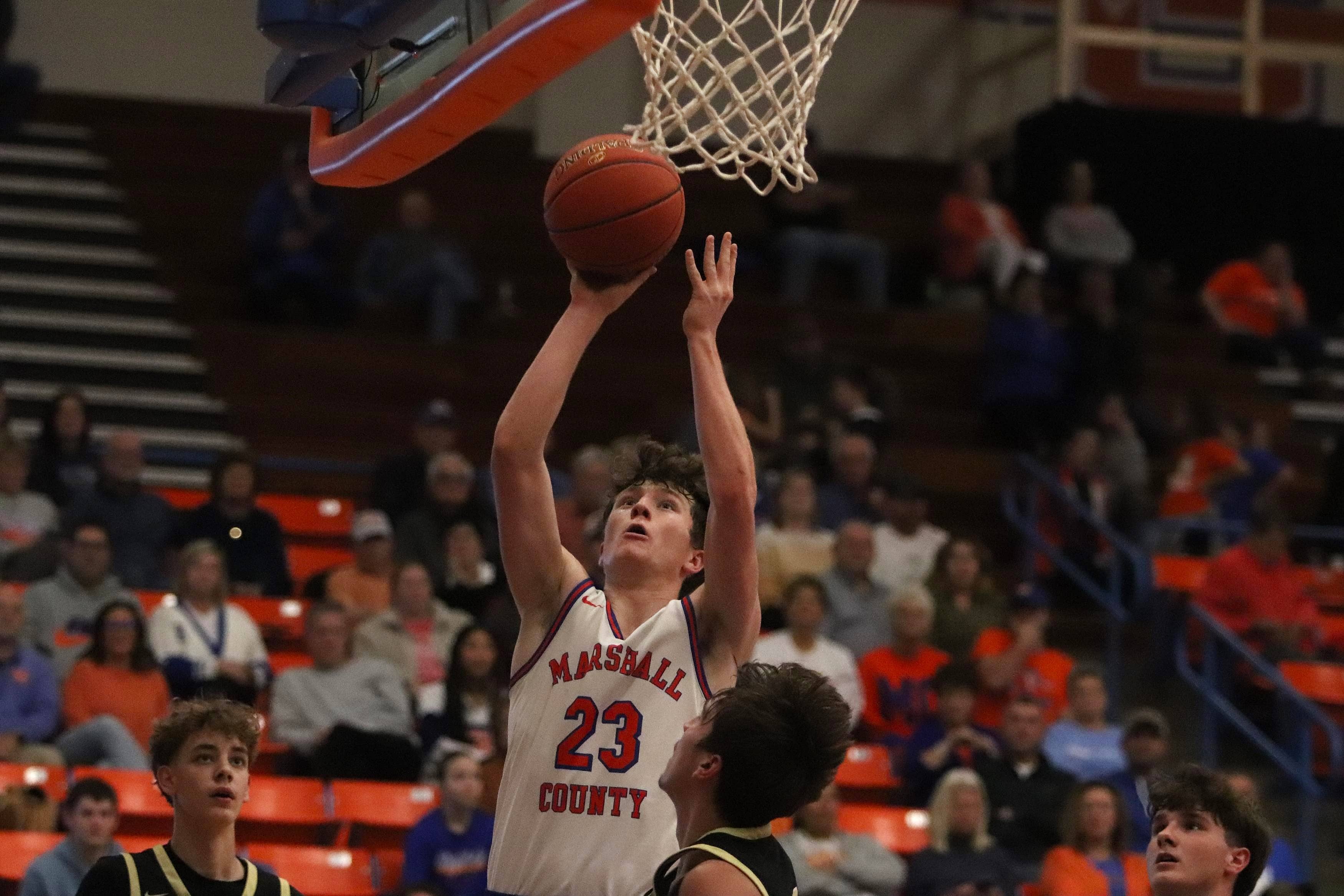 Marshall County and Murray played the first game of their Fourth District schedule on Tuesday at Reed Conder Gymnasium. The last meeting between the two teams was an overtime thriller in the district title game last season that the Marshals won 62-59.