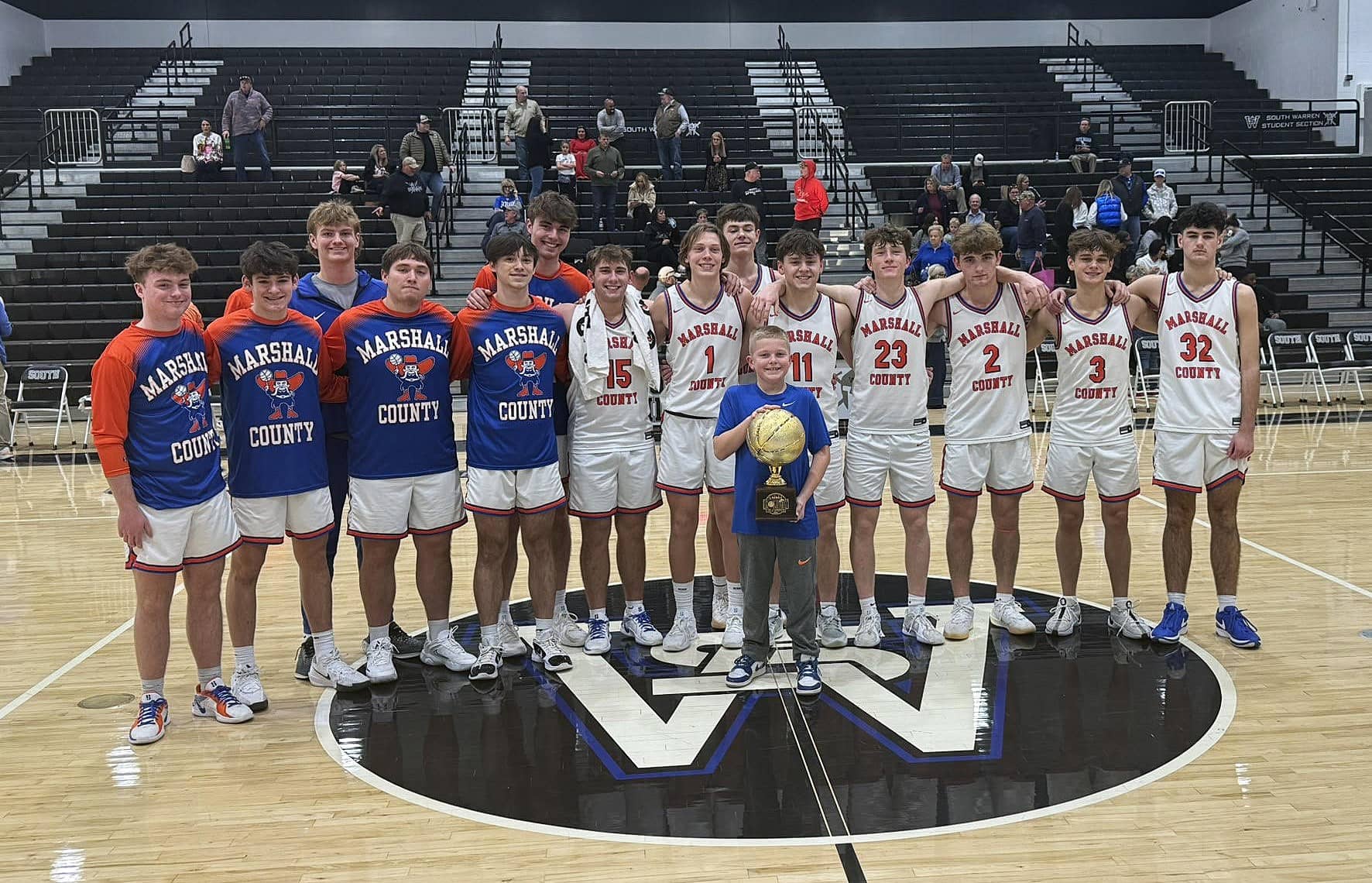 In Sunday’s championship game against host South Warren, a season high 26 points by Kyzer Phillips led the Marshals in the 70-62 win. Phillips hit six of the Marshals nine three-pointers. It was another good game at the free throw line where they went 17-of-22. Matthew Langhi was 6-of-6 and Alex Staples 6-of-8, all converted in the fourth quarter.