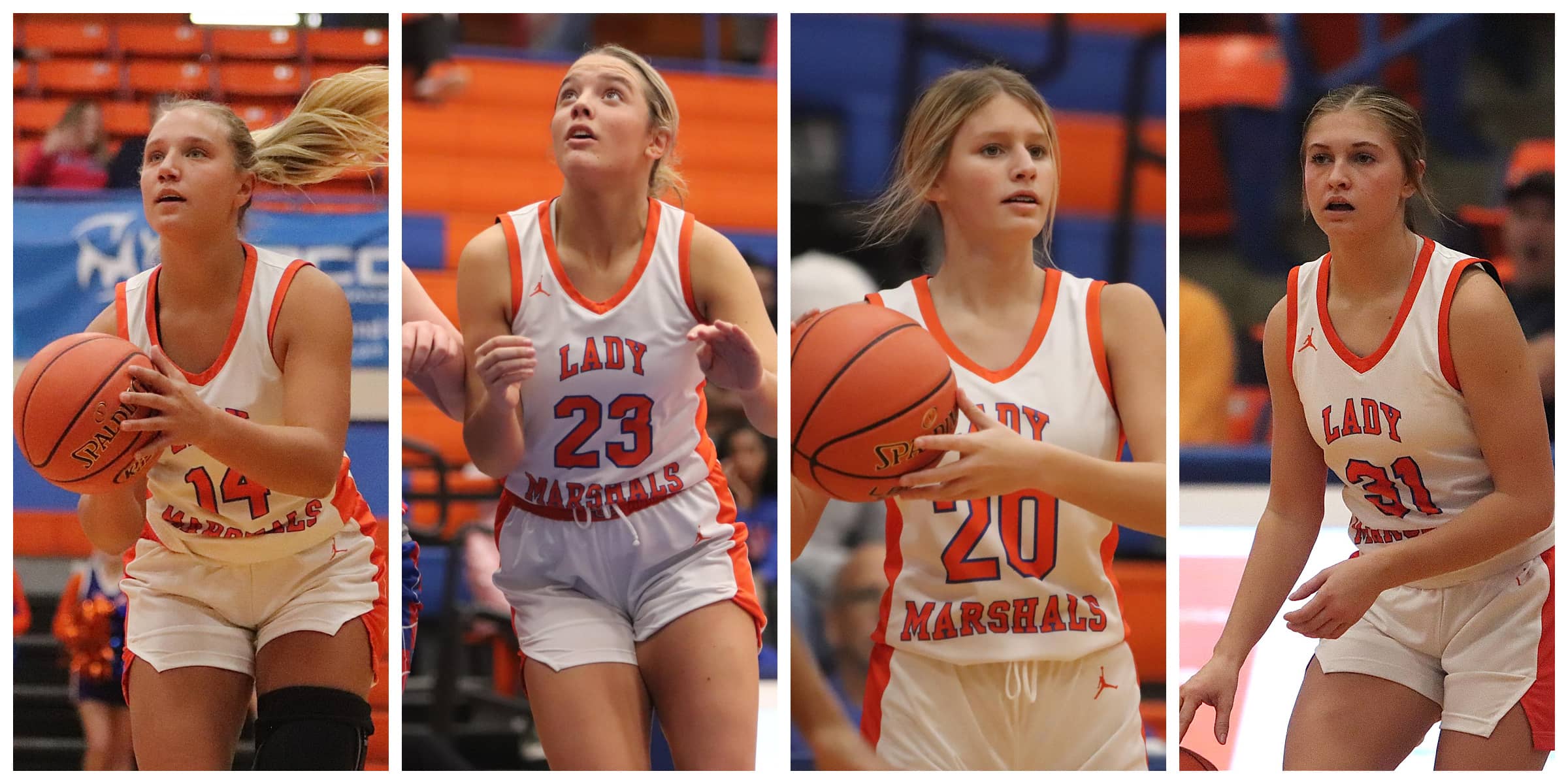 The Lady Marshals led by one at 12-11 at the end of the first quarter then took a 25-21 lead at halftime.