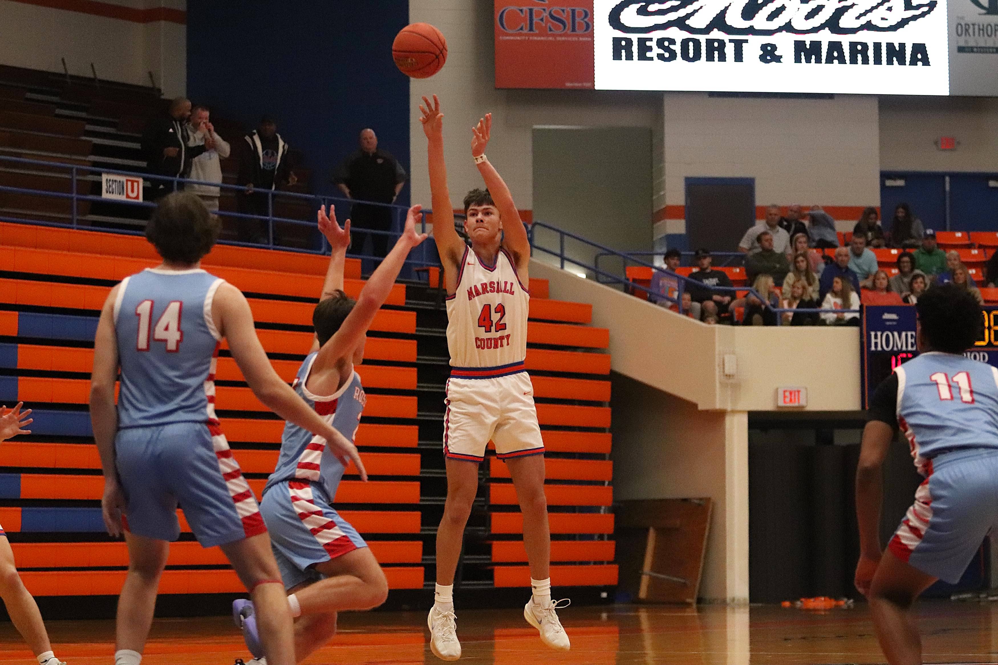 Marshall County (10-0): Tommy Robertson 16, Matthew Langhi 16, Alex Staples 9, Kyzer Phillips 9, Neyland Jezik 8, Ryan Stokes 2, Kaden Mohler 2, J.T. Hall 2, Maxson Mitchell 2