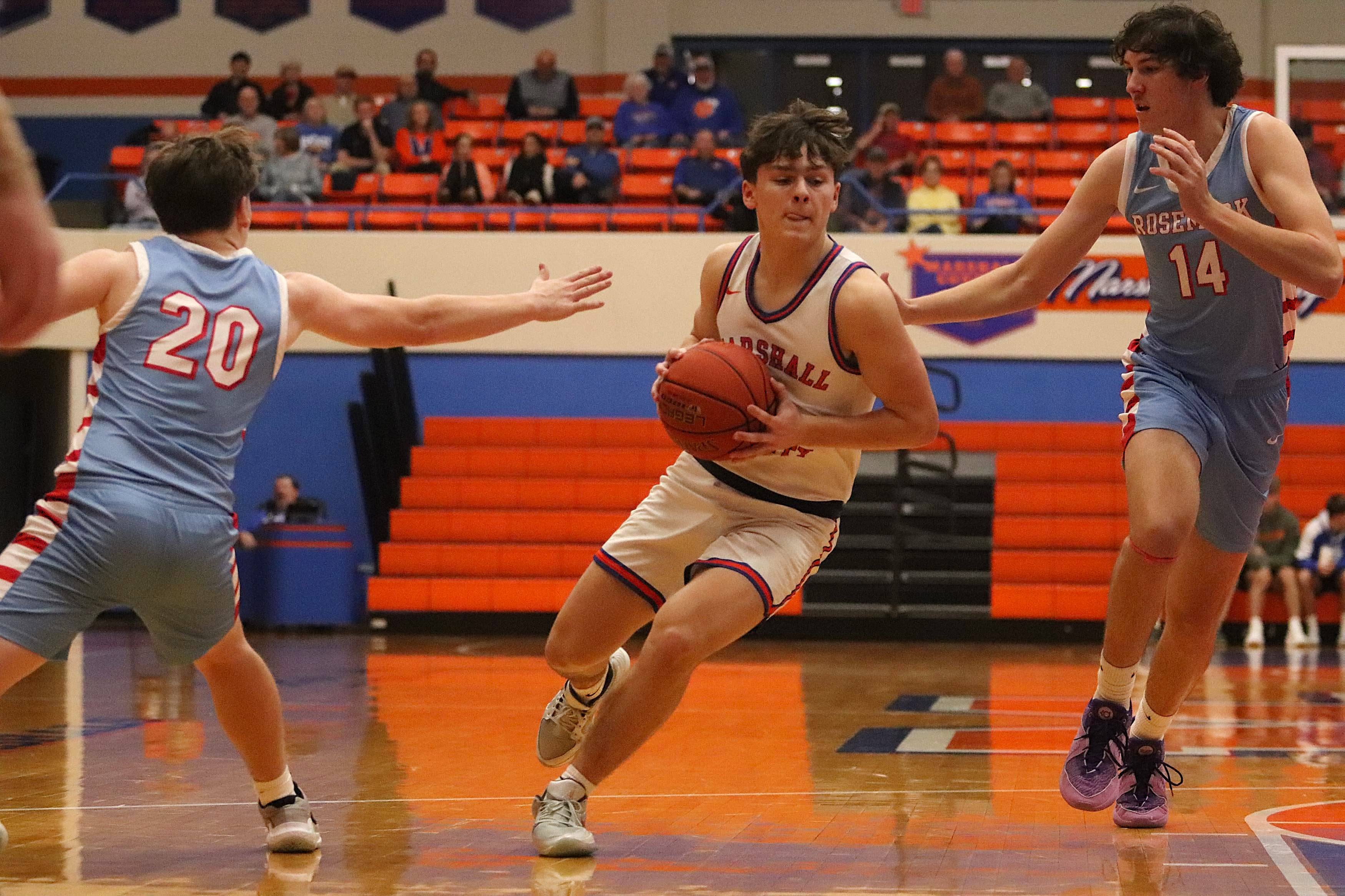 Marshall County opened up the FNB Bank Holiday Classic on Saturday with a 66-39 win over Tipton-Rosemark Academy from Millington, Tenn. In Sunday’s semifinal round, the Marshals beat Louisville Ballard 84-75 to advance to Monday’s championship game against Sayre at 2:00.