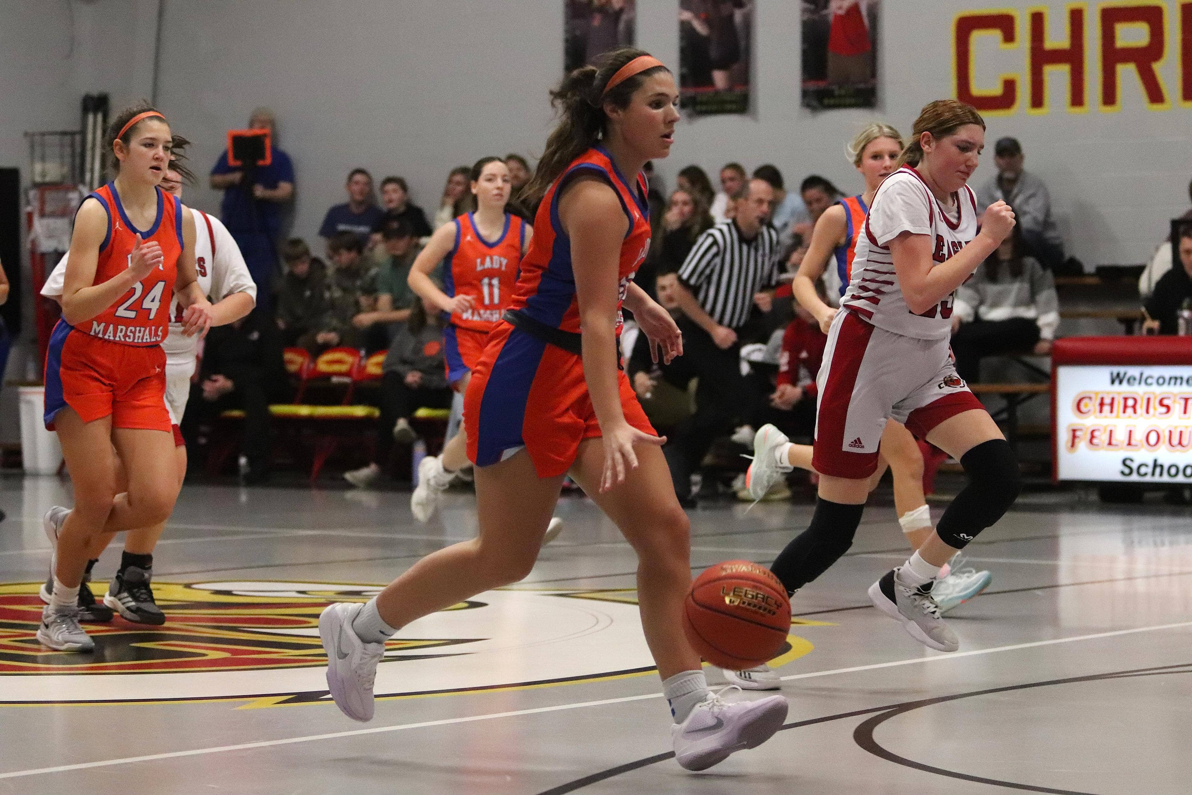 Christian Fellowship hosted Marshall County in a district match-up on Tuesday. The Lady Marshals won 78-12 to improve to 12-3 while the Lady Eagles fall to 4-10.