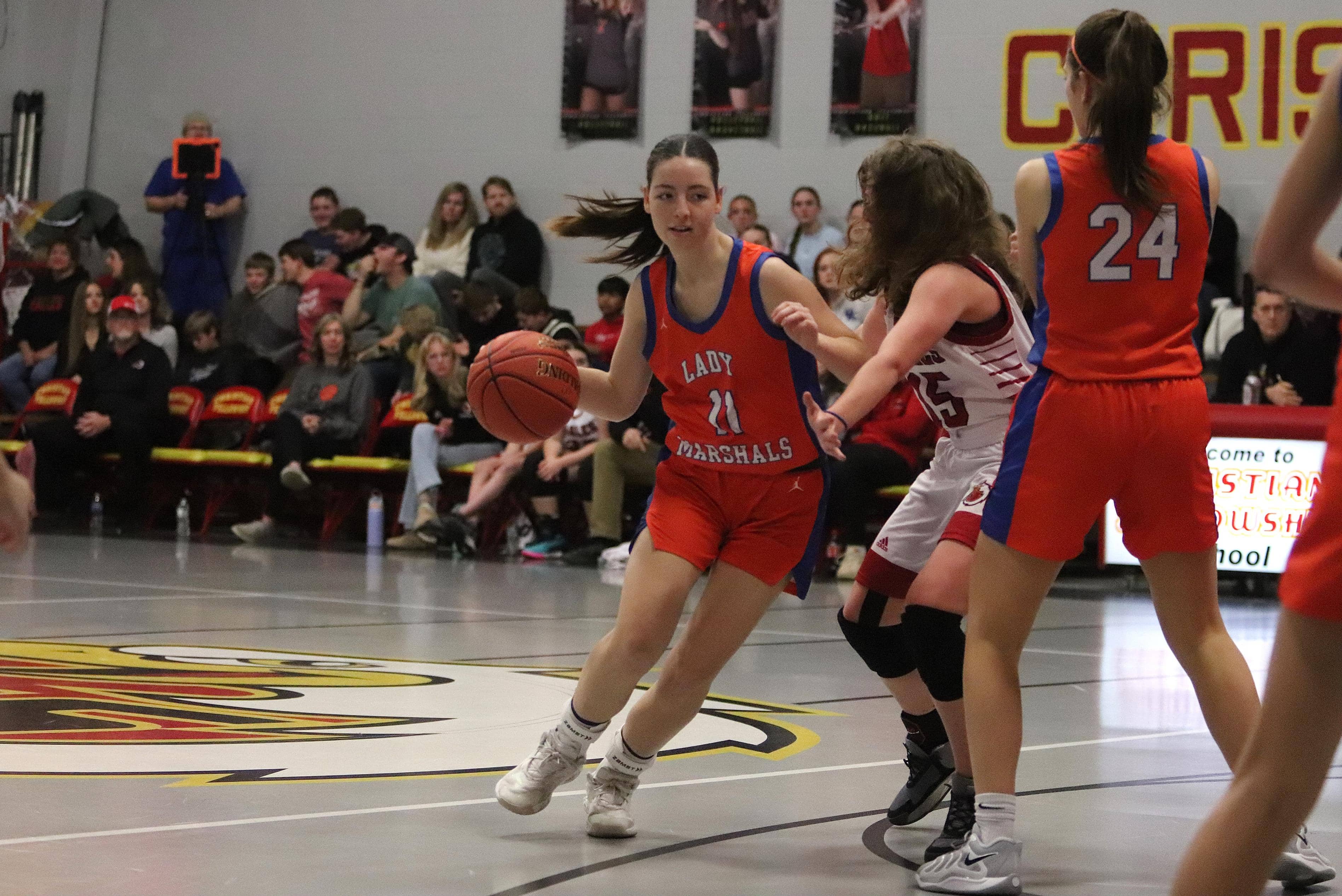 Marshall County jumped out to a 7-0 lead before CFS ended the run on a basket from freshman Kylee Hines. The Lady Marshals went on to lead 28-3 at the end of the first quarter led by Kenzlee Terry with 10 points.