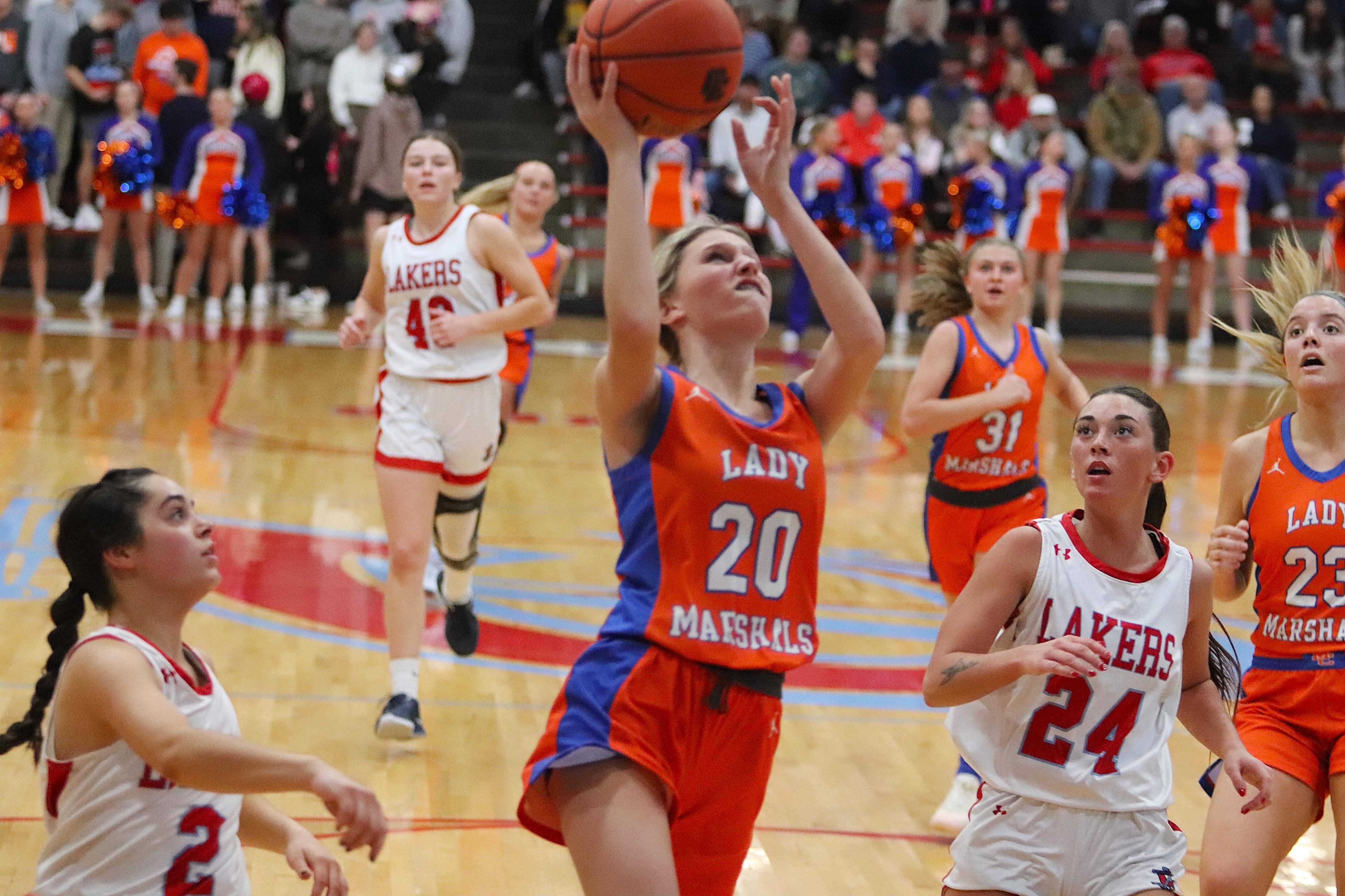 Sandlin drew a foul in the final two seconds and sank both free throws to put the Lady Marshals up 12-11.