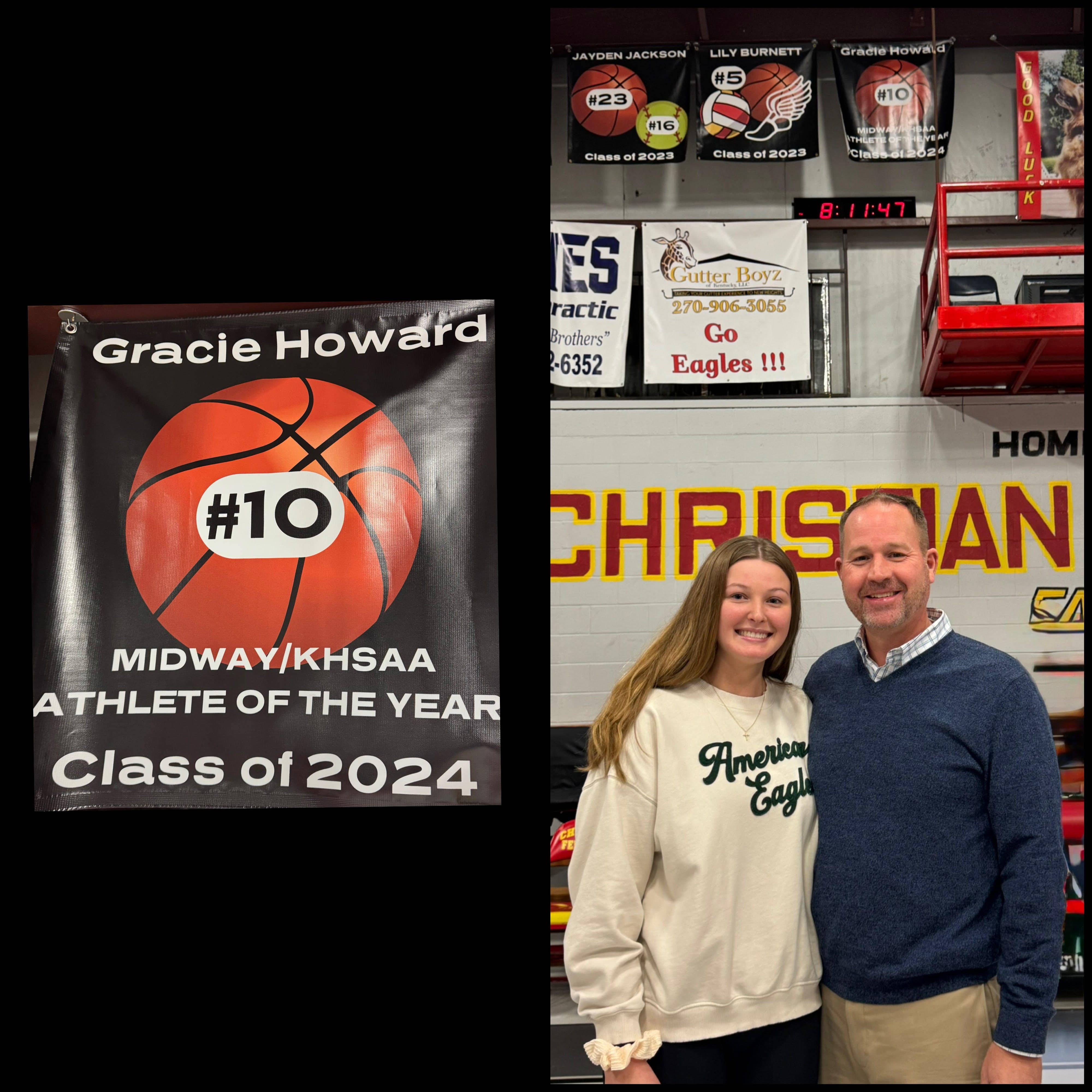 Howard helped lead the Lady Eagles to a Fourth District runner-up and first-ever First Region Tournament appearance her junior season. She is a member of the 2023 and 2024 All-District Teams, 2023 All-Region Team, selected to the All-Purchase Team and named the 2023-2024 Midway University/KHSAA Student-Athlete of the Year for basketball.