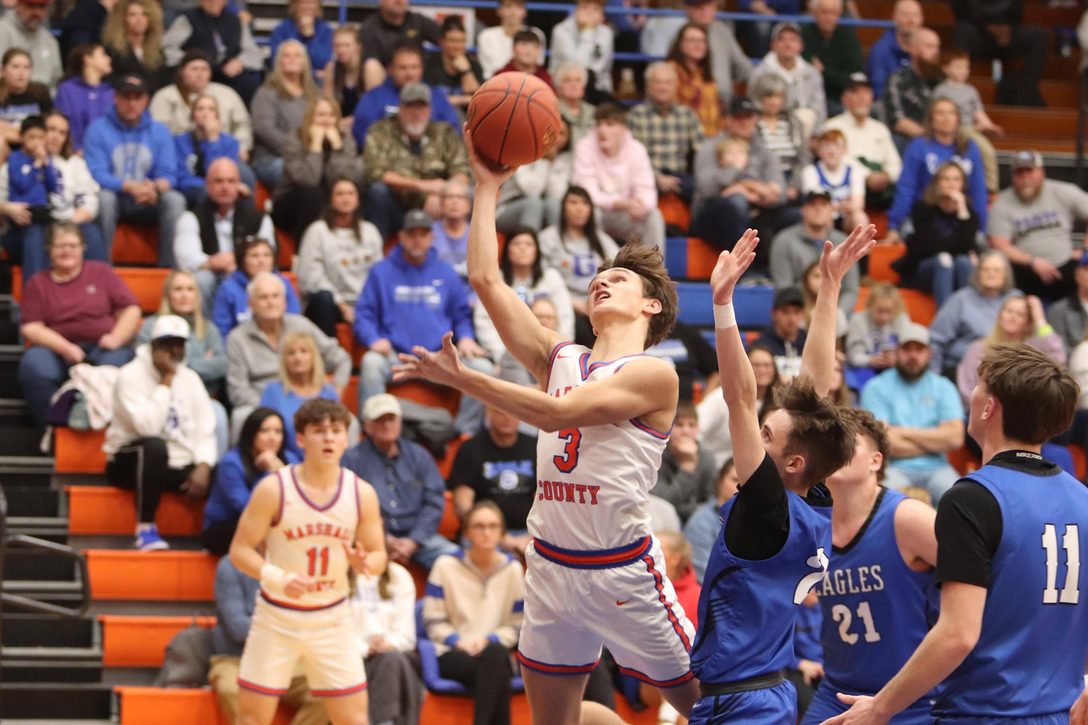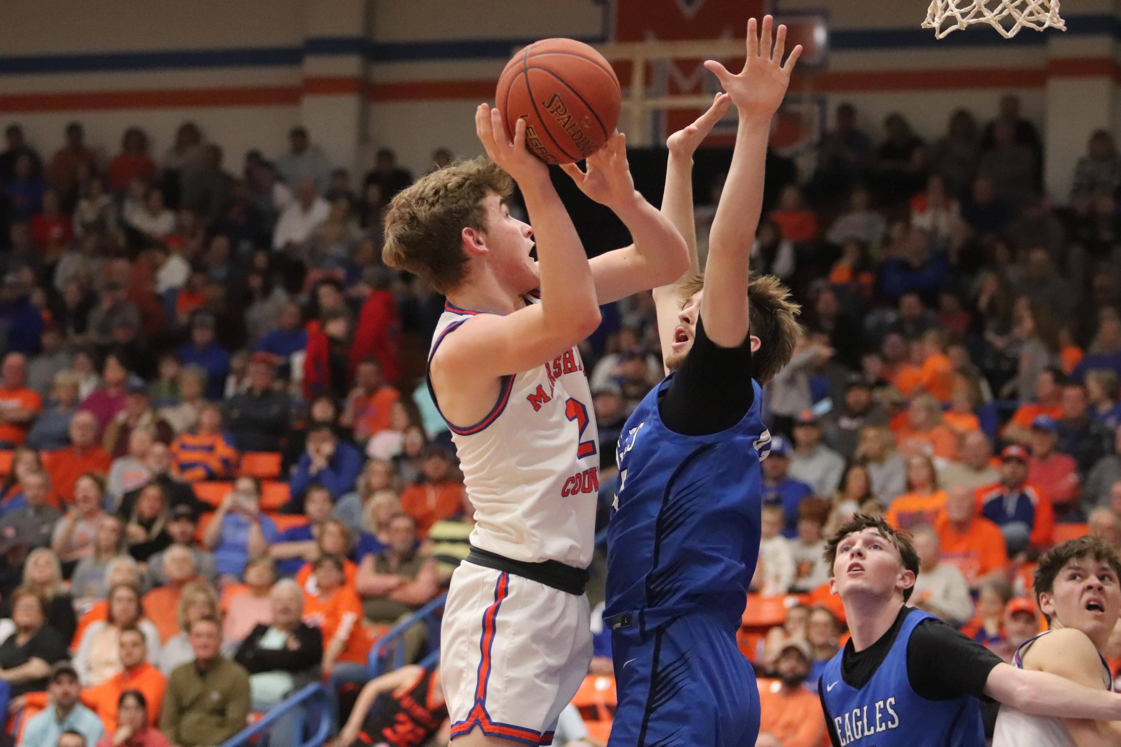 Four points from Robertson and a three from Kyzer Phillips gave the Marshals their largest lead of the night at 36-27 early in the second half. Braden Waller took control for the Eagles and powered his way to the goal for six of their points during an 11-2 run that followed to tie the game up at 38.