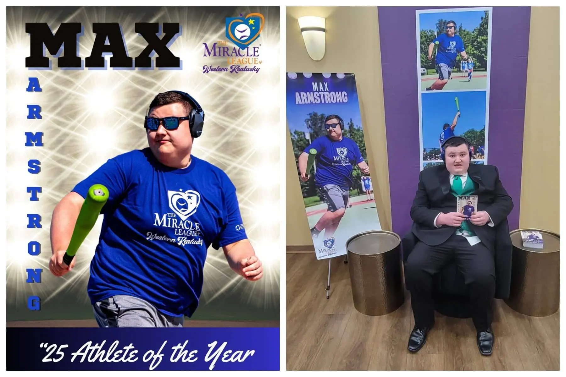 A highlight of the evening was the presentation of the 2025 Athlete of the Year Award to Max Armstrong (Son of Brad and Natalie Armstrong) of Lyon County, a standout Miracle League player known for his sportsmanship and dedication. Armstrong received a heartfelt surprise when his former classmate, Travis Perry of the Kentucky Wildcats, appeared via video to congratulate him on the honor. Perry’s message celebrated Armstrong’s achievements.