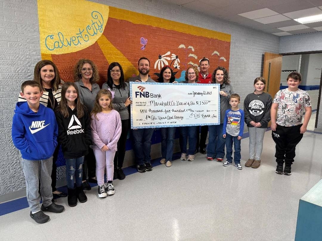 January 17, 2025 (Mayfield, KY) FNB Bank is proud to announce that they have donated $1,500 back to Marshall County Schools through their Spirit Debit Card Program. These donations to the school systems are a result of FNB’s 4 th quarter 2023 Spirit Debit Card Program.