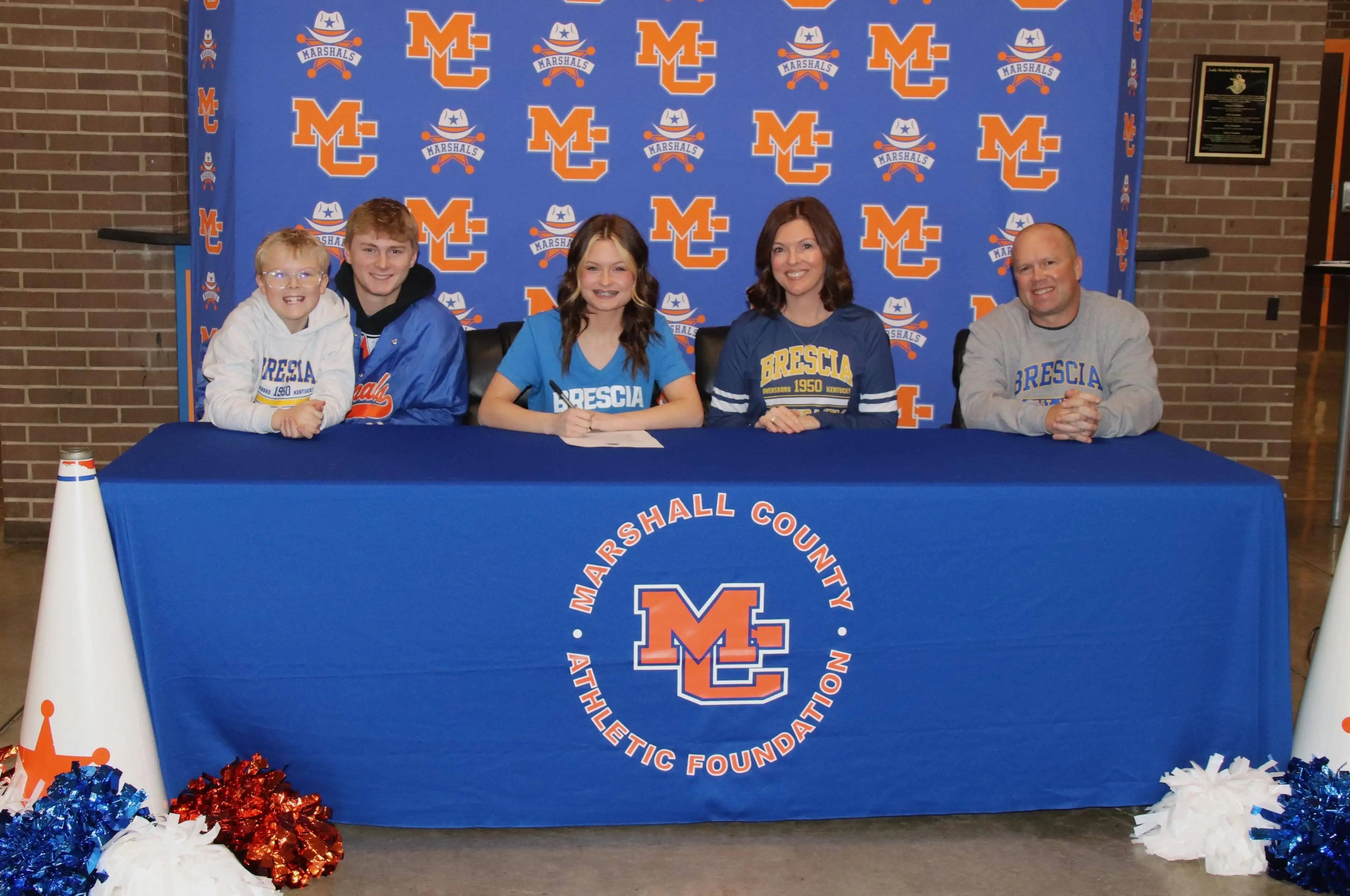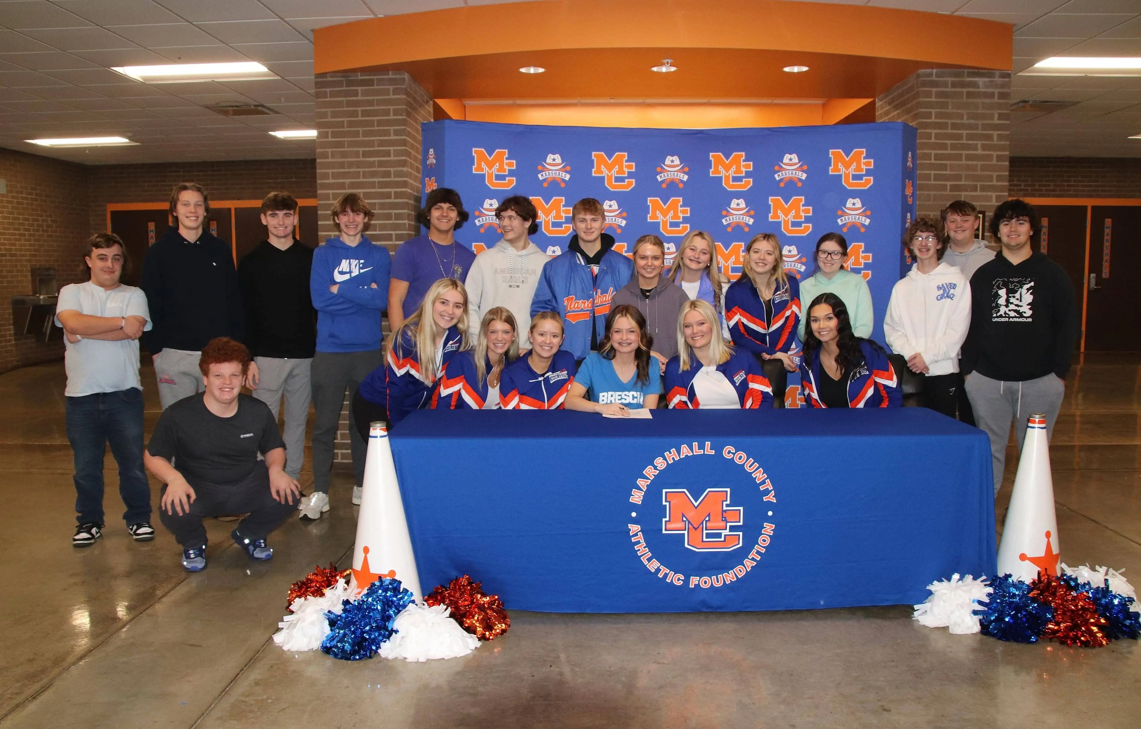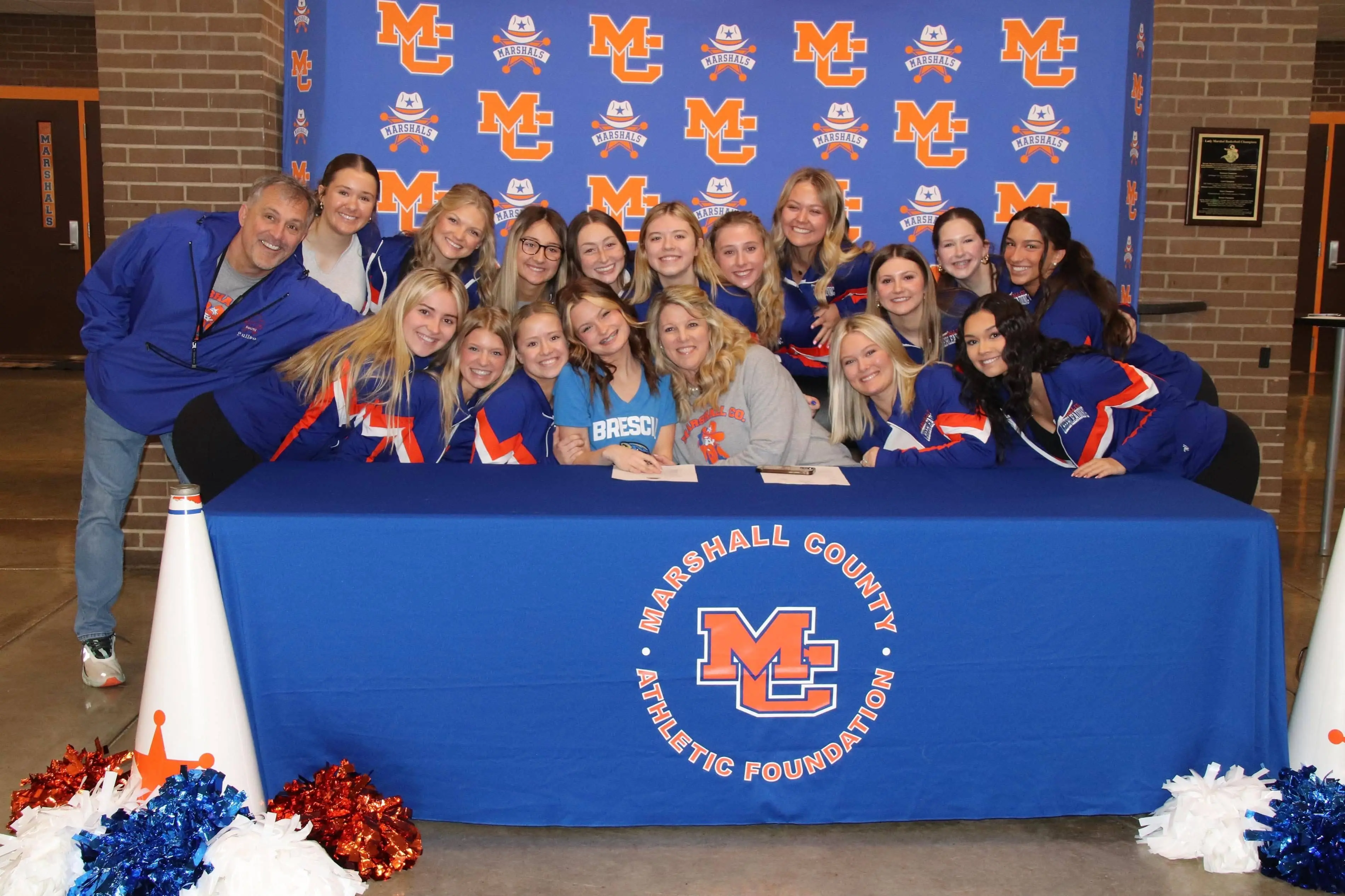 Anistyn Treas officially signed on Wednesday at Marshall County High School to continue her education and cheerleading at Brescia University. The Bearcats are an elite program in the River State Conference in the NAIA.
