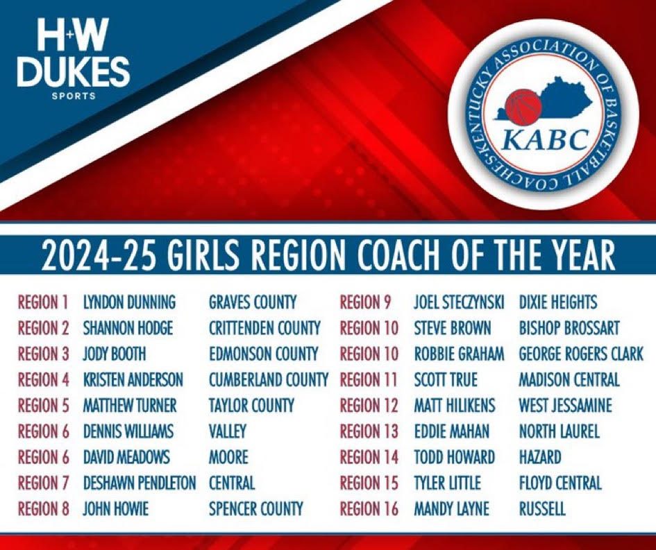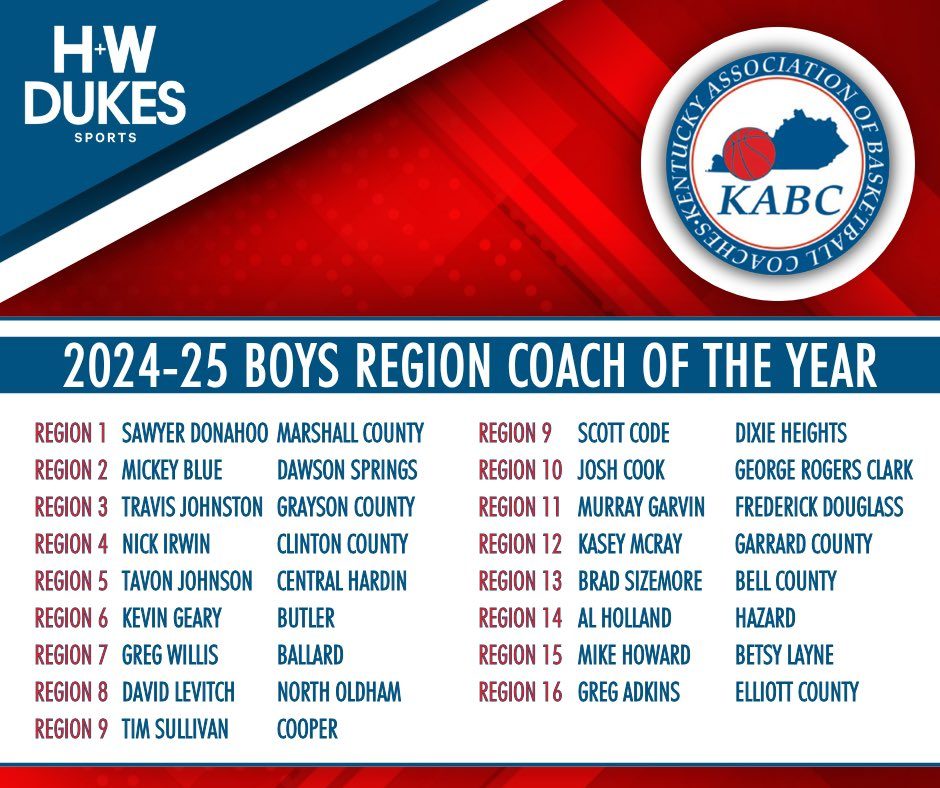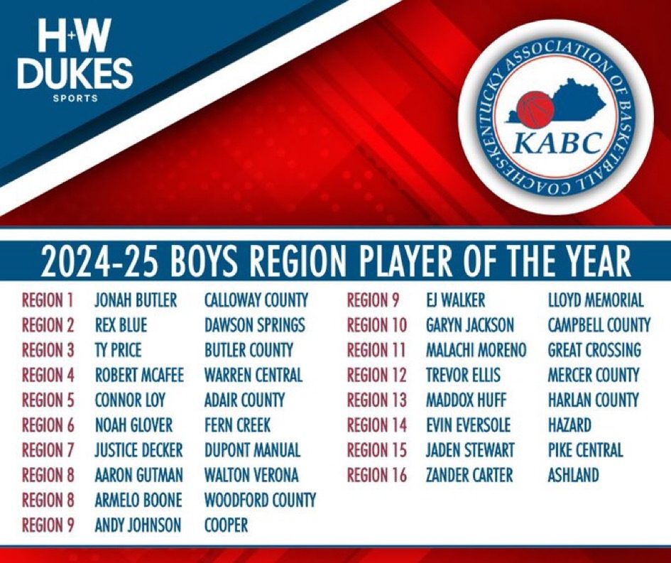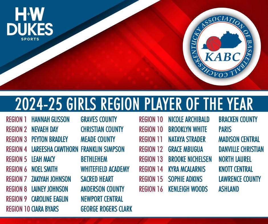 The Kentucky Association of Basketball Coaches (KABC) have announced the KABC Player of the Year and Coach of the Year selections for all 16 regions in the state. Voted on by coaches from each region, the Player of the Year is an award for seniors only.